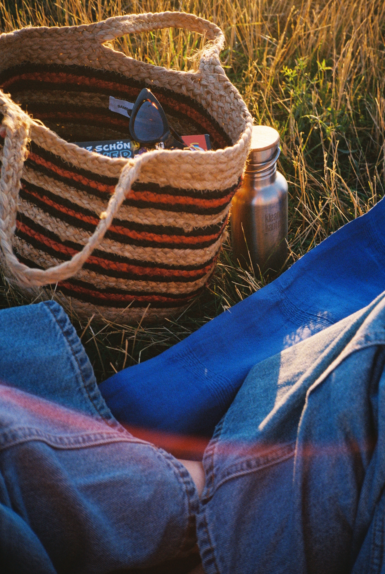 Diesen Sommer: die gestreifte Samsoe Samsoe Korbtasche. Allgemein habe ich eine große Vorliebe für Taschen mit kurzen Henkeln, in denen sich allerlei verstauen lässt (von analoger Kamera bis Einkaufsbeutel, Büchern, Kalender, Picknickdecke, Sonnencreme und mehr).