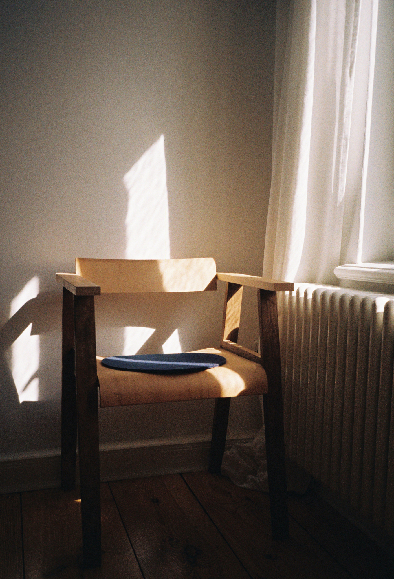 Den Stuhl aus recyceltem Holz habe ich 2015 auf der Absolvent*innen-Ausstellung der Hochschule für Bildende Künste in Hamburg für einen Euro erworben. Er war Teil einer Abschlussarbeit und Performance, in der die Stühle vor den Augen der Besucher*innen nach und nach zusammengefügt und geleimt wurden. Die Nachfrage war riesig und ich freue mich noch heute darüber, dass ich einen der 100 Stühle ergattern konnte.