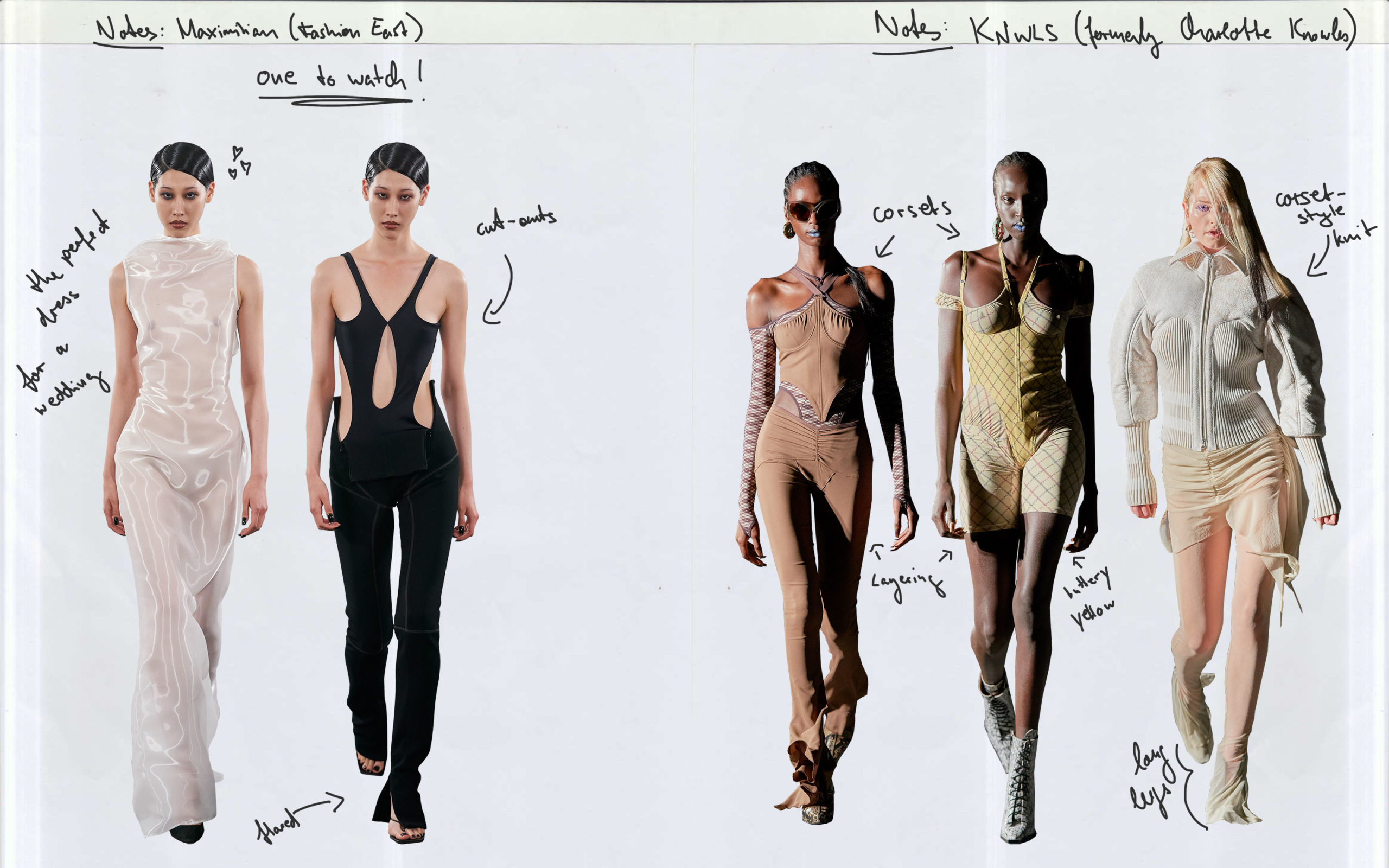 Trotz größerer Bekanntheit dürfte Charlotte Knowles ebenfalls zu den Neulingen der Branche zählen, bekannt wurde die Designerin vor allem durch ihre Korsetts sowie Hosen und Longsleeves mit erdfarbenen Prints. Erst kurz vor der Show benannte sie ihr Label in KNWLS um, unverkennbar waren ihre Kreationen aber dennoch. Meine Favoriten: Korsetts in verschiedenen Nuancen sowie ein Cardigan mit Korsett-Elementen.