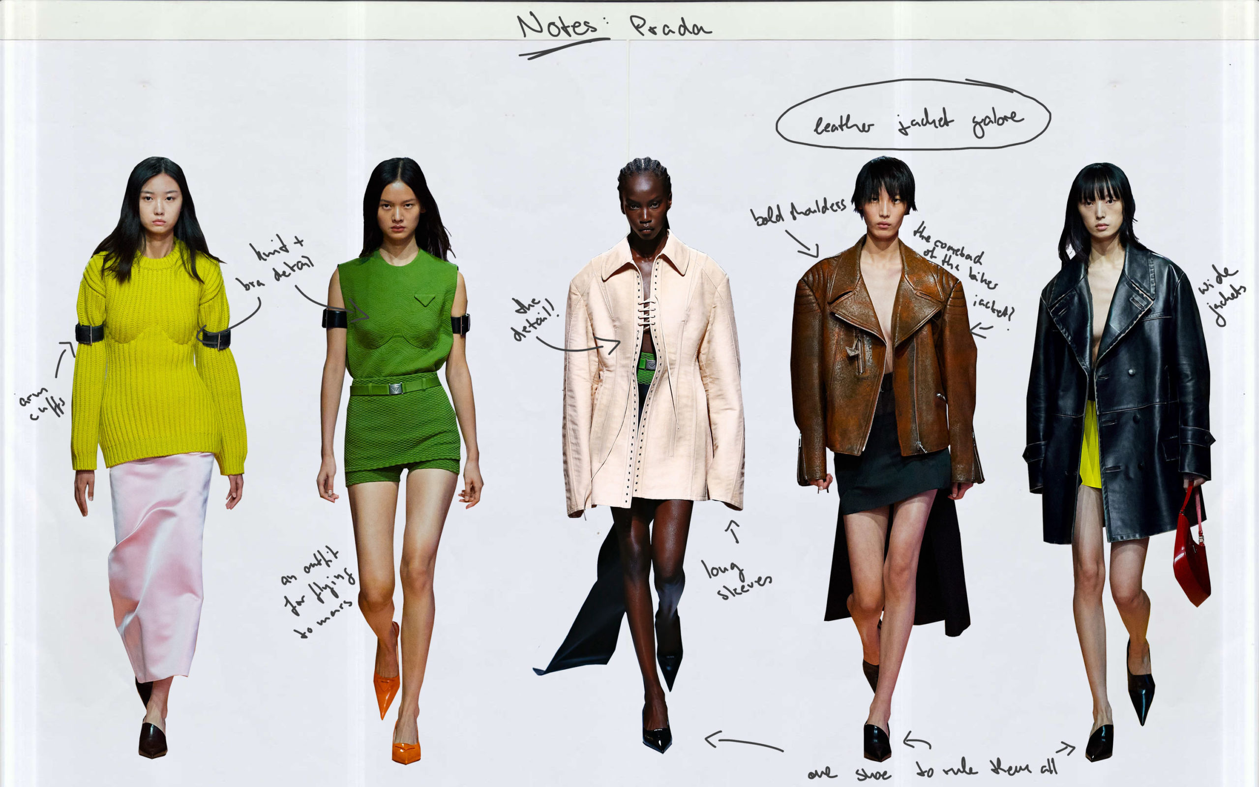 Die SS22-Kollektion zeigte Prada unter Miuccia Prada und Raf Simons in zwei Städten zugleich: In Mailand sowie in Shanghai präsentierten unterschiedliche Models nicht nur denselben Look, sondern auch die neuen Möglichkeiten sowie die Idee einer Community. Gestreamt wurde natürlich ebenfalls, auf YouTube, der offiziellen Prada-Webseite sowie auf Instagram konnte man die Show live verfolgen. Modisch waren die Highlights für mich schnell klar: Weit geschnittene Lederjacken und -mäntel dominierten die Laufstege. Insbesondere zwei Modelle samt Schnürdetail ließen mein Herz höherschlagen, während ich mich beim Anblick einer braunen Bikerjacke (samt breiter Schulter) fragte, ob diese im Frühling 2022 ihr Comeback feiern würden. Ebenfalls ein Favorit: Die verschiedenen Pullover und Tops aus Strick, die durch ein Bra-Element bestachen.