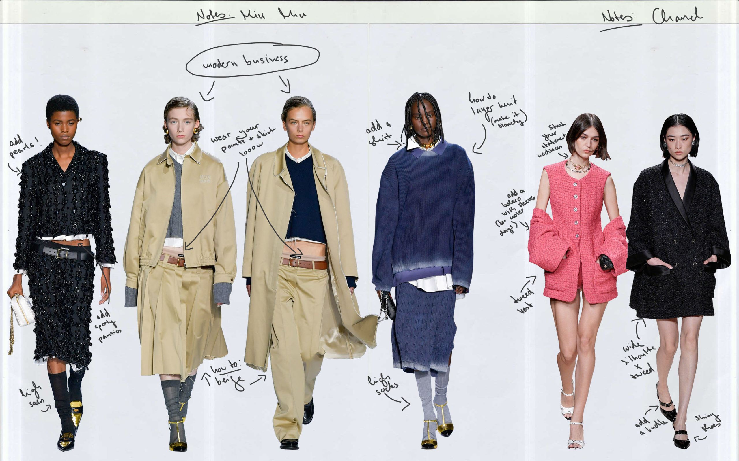 Mit Chanel möchte ich, seit Virginie Viard die Kreativdirektion übernommen hat, nicht so wirklich warm werden, was natürlich nicht tragisch ist. Inmitten von der enormen Fülle von 71 Looks gab es dann aber doch zwei, die mir im Gedächtnis blieben: Ein langer, weit geschnittener Tweed-Blazer sowie eine pinkfarbene Weste samt passendem Bolero (beides ebenfalls aus Tweed). Vielleicht waren es nicht die spannendsten Looks, zumindest aber ganz sicher welche, die auch in vielen Jahren noch funktionieren.