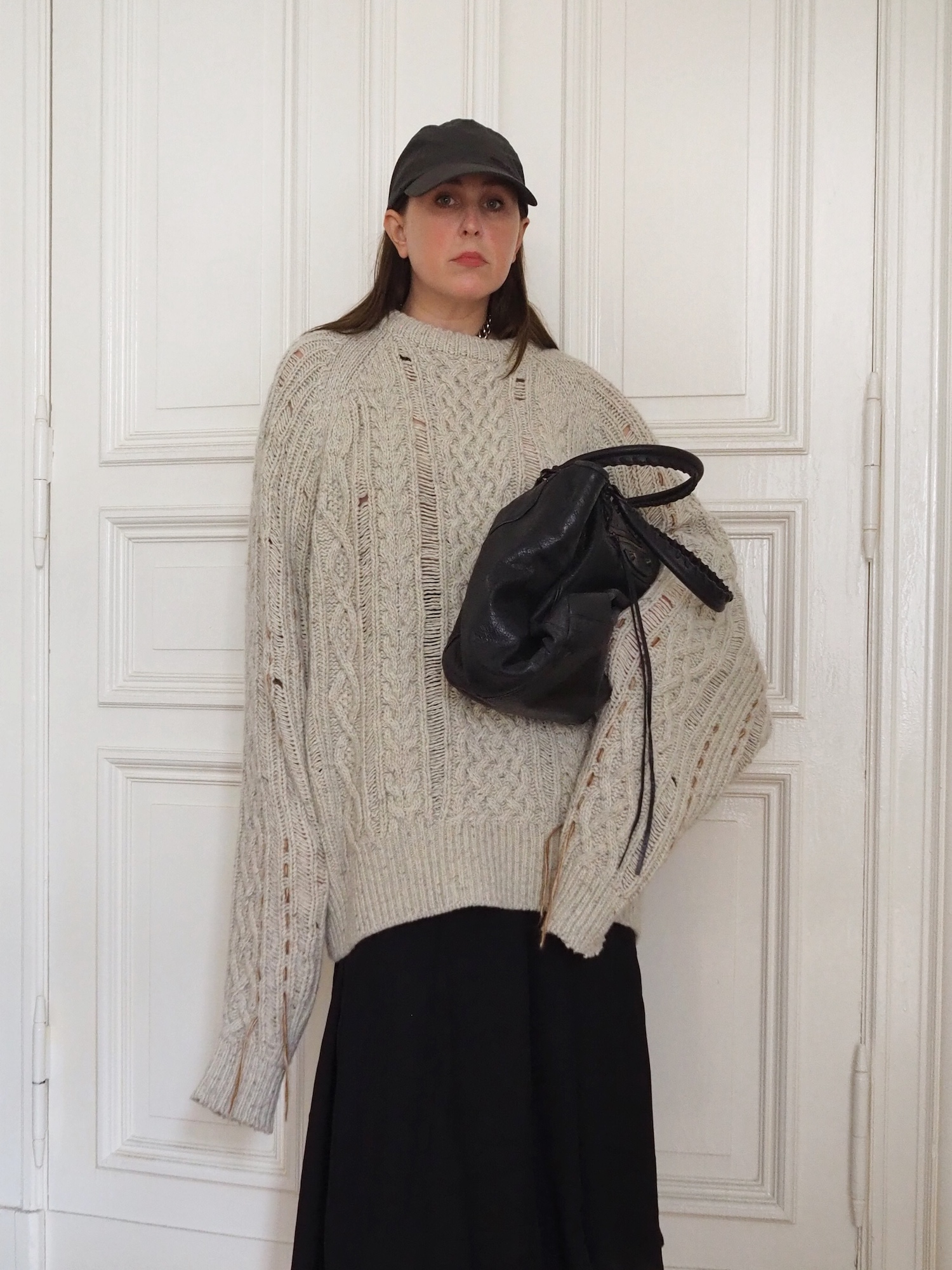 3. Ebenfalls ganz oben auf meiner Herbstliste: Mein Strickpullover mit überlangen Ärmeln. Das schöne Stück von Andersson Bell fand ich vergangenen Winter im Sale und erfreue mich seither jedes Mal an ihm, wenn ich es sehe. Sonderlich praktisch ist der Pullover natürlich nicht immer, vor allem nicht dann, wenn ich ihn beim Essen trage. Dann gilt: Die Ärmel so weit es geht, hochkrempeln.