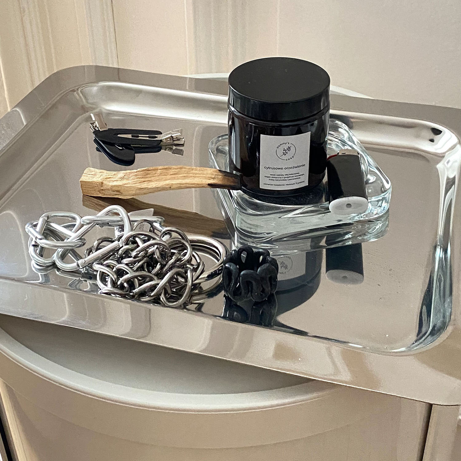 Den Herbst läute ich gerne mit (abwechselnd) Palo Santo und Duftkerzen ein, weil die Atmosphäre so noch einmal viel gemütlicher wird. Meine liebste Kerze ist derzeit ein Exemplar von „Mommy’s Soap“, die mir einst die Tante einer Freundin aus Polen zuschickte. Sie riecht sehr zitruslastig, passt aber dennoch gut zu kälteren Tagen. Ebenfalls nicht fehlen dürfen Wolldecken, am liebsten sind mir gehäkelte oder grob gestrickte Varianten, weil ich das Gefühl von klassischen, dicken Wolldecken nicht so gerne mag.