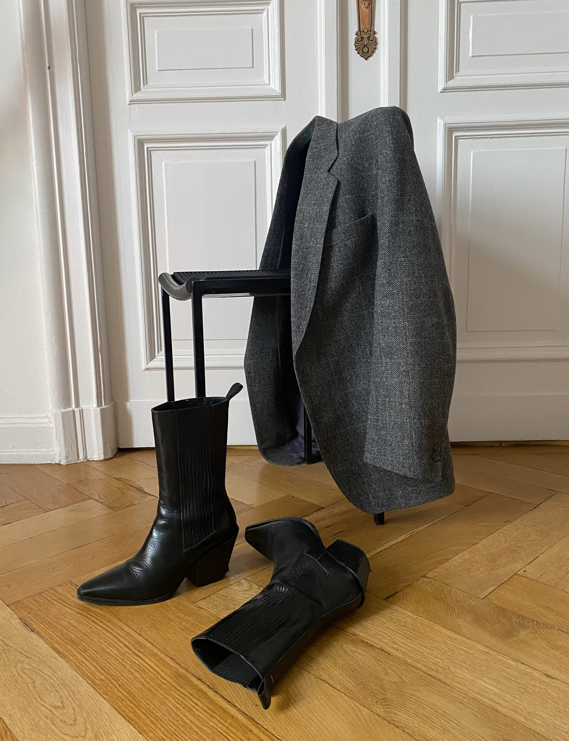 Ich habe sehr lange gebraucht, um mich mit Blazern anzufreunden. Irgendwie fand ich immer, sie sitzen nicht gut oder man sieht direkt aus, als würde man zum nächsten Businessmeeting gehen. Vor einigen Jahren kam erst der Wendepunkt und ich hatte meinen ersten Blazer im Schrank. Jetzt kann ich dieses Kleidungsstück kaum aus meiner Garderobe wegdenken. Zwei meiner liebsten Modelle sind vom Flohmarkt: Ein gerade geschnittener Lederblazer mit einem leichten 70ies-Hauch und ein übergroßer Wollblazer. Die beiden trage ich abwechselnd, je nach Look, den ganzen Herbst. Ist es noch wärmer, ziehe ich ein Longsleeve oder T-Shirt darunter. Bei kühleren Temperaturen schichte ich eine dünne Daunenjacke unter den Wollblazer. So kann ich ihn bis Wintereinbruch tragen. Das dritte Stück, das ich nach der Sommerpause wieder aus meinem Schrank nehme, sind wohl meine Stiefel.
