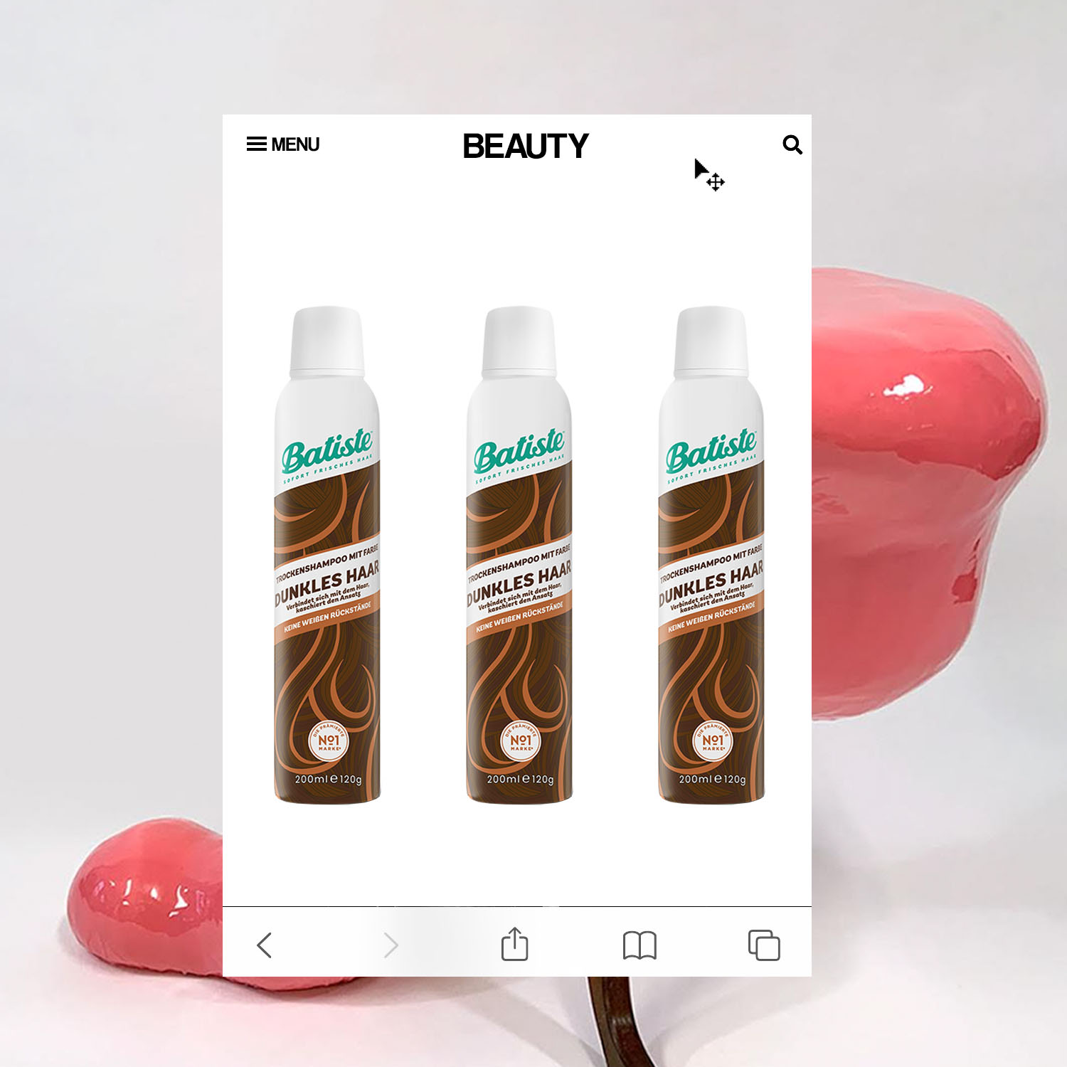 Tatsächlich habe ich die erste Flasche letztes Jahr in einem Drogeriemarkt in Südafrika gekauft. Da wir so extreme Arbeitszeiten hatten, konnte ich mich nicht aufraffen, meine Haare zu waschen, weshalb ich von der Hair&Make-up Artistin den Tipp bekam, das Batiste Trockenshampoo für dunkles Haar zu kaufen. Die meisten Trockenshampoos sind leider nichts für dunkle Haare und ich wurde immer wieder aufs Neue enttäuscht und mit einer weißen Puderschicht im Haar zurückgelassen. Das wird euch hier nicht passieren, denn es lässt sich super im Haar verteilen und ist in sämtlichen deutschen Drogerien erhältlich. Einmal aufgesprüht, lässt es sich gut mit den Fingern einmassieren. Wer Extra-Volumen möchte, kämmt zusätzlich durch den Ansatz.