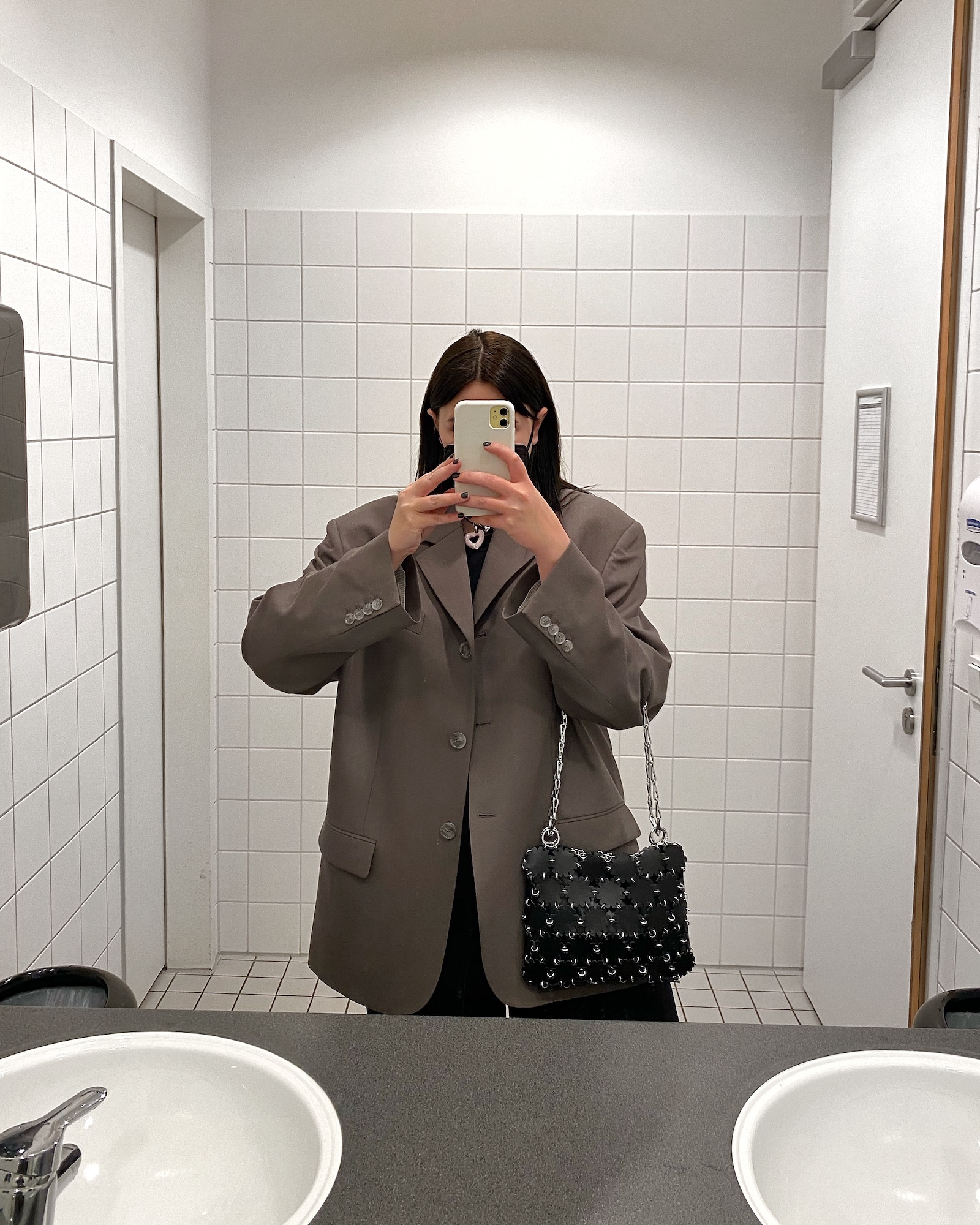 Blazer: Acne Studios (nicht mehr erhältlich), Tasche: Paco Rabanne (secondhand)