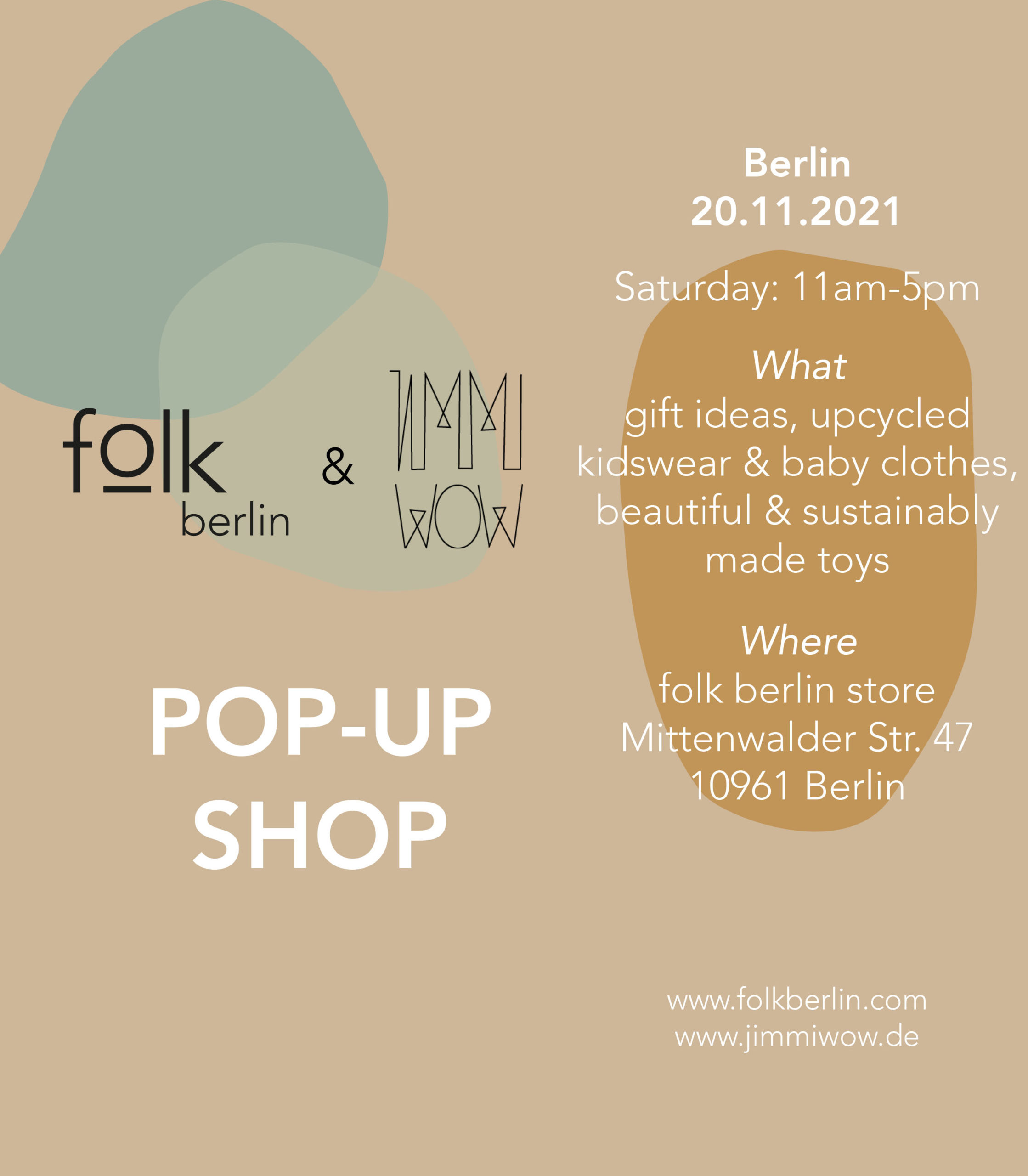 Wer am kommenden Samstag noch nichts vor hat und auf der Suche nach nachhaltigerer Kinder- und Babymode sowie Spielzeug ist, sollte beim Pop-up Event von Jimmy Wow vorbeischauen. Das Event findet von 11:00 bis 17:00 Uhr im Folk Berlin Store statt.
