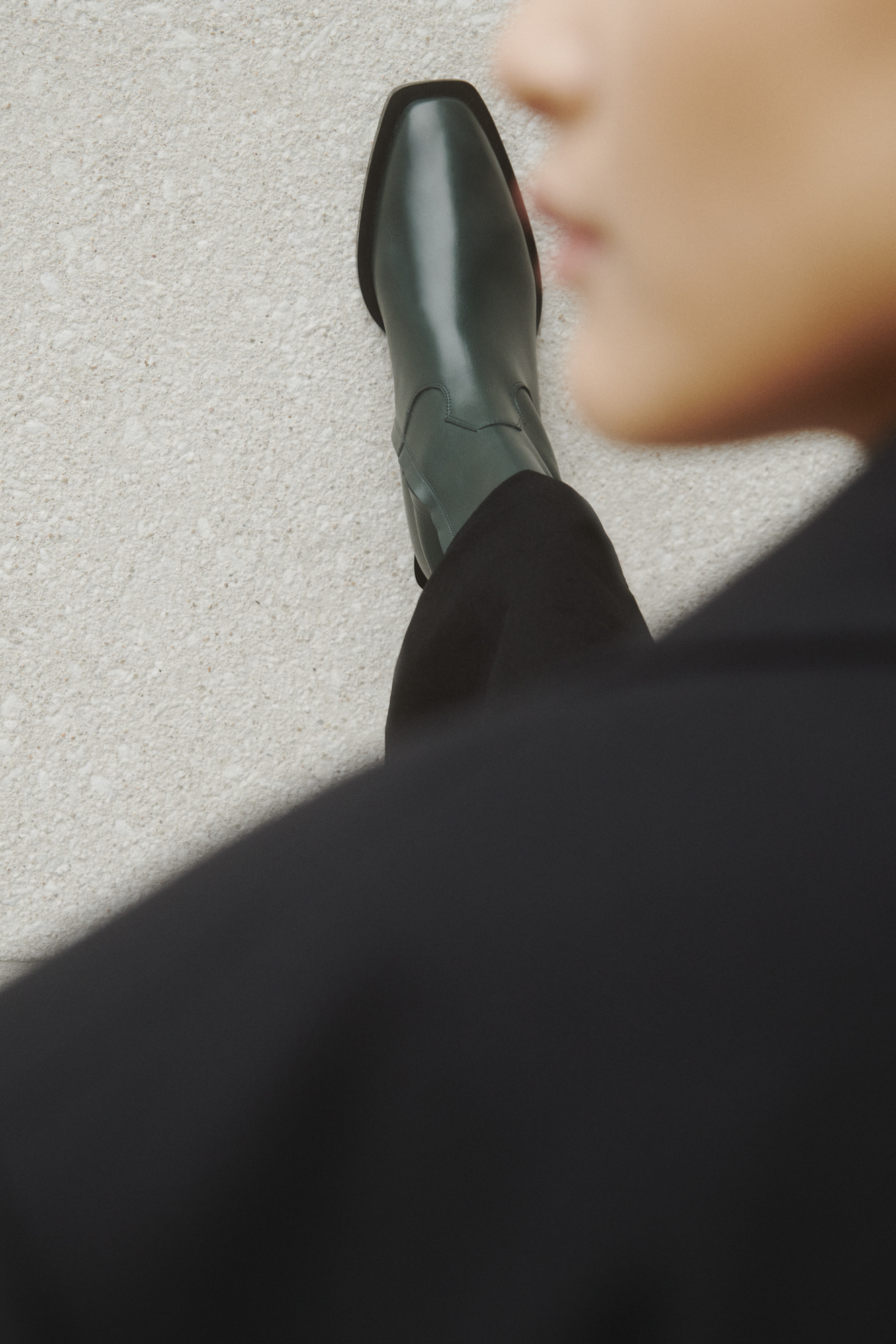 Die Cowboy-Family von Aeyde hat pünktlich zum Herbst ein Update erhalten — und das trägt den klangvollen Namen „Luis“. Während die Styles „Kate“, „Ruby“, „Belinda“ und „Bea“ in der Vergangenheit durch lässige Formen und elegante Elemente überzeugten, rundet das neueste Modell die Kollektion gekonnt ab. Die Stiefelette gilt als eine Neuinterpretation des traditionellen Arbeiterstiefels und spiegelt durch die kantige Silhouette sowie klare Linien nicht zuletzt die Geometrie der Berliner Architektur wider. Neben dem neuen Design lanciert Aeyde außerdem auch die Nuance „Moss Green“, die sich als ein dunkles Grün präsentiert. Alle Schuhe findet ihr ab sofort bei Aeyde. Einen Einblick in die Kampagnenbilder, die in Berlin fotografiert wurden, erhaltet ihr schon bei uns: