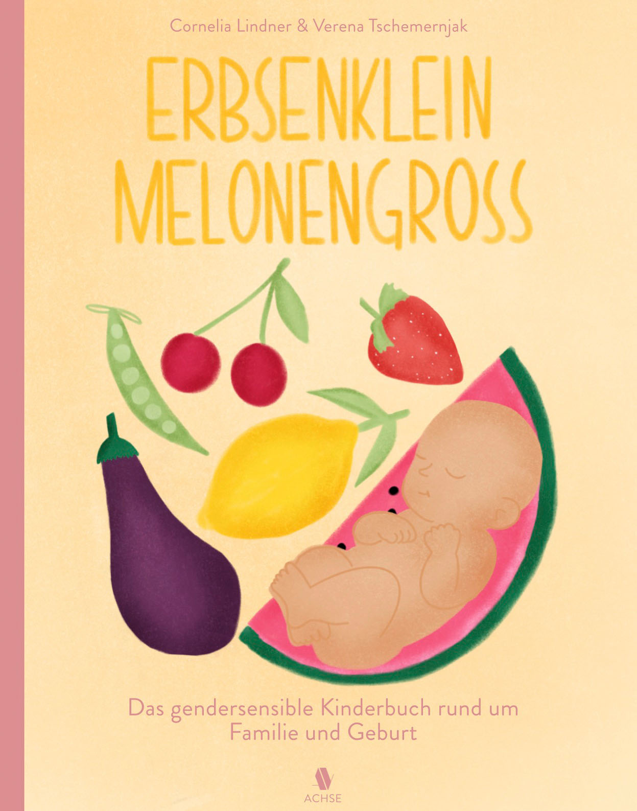 Der Achseverlag schreibt: „Kaum eine Kinderfrage verunsichert Erwachsene mehr als diese. In Erbsenklein Melonengroß begleiten kleine und große Leser:innen ab vier Jahren das Kind Toni dabei, der Frage auf den Grund zu gehen. Geschlechtssensibel und unaufgeregt erzählt das Kinderbuch die Geschichte von Empfängnis, Schwangerschaft und Geburt so, dass sich alle Familien darin wiederfinden. Tonis Eltern erwarten Nachwuchs. Grund genug für das aufgeweckte Kind, alles ganz genau wissen zu wollen: Wie groß ist das Baby? Wie kommt das Baby in den Bauch? Was machen Menschen, wenn sie biologisch keine Kinder bekommen können? Wie ist Tonis Freund in seine Familie gekommen? Und wie kann Toni schon jetzt mit dem Geschwisterchen spielen? Das gendersensible Vorlesebuch rund um Familie und Geburt.“