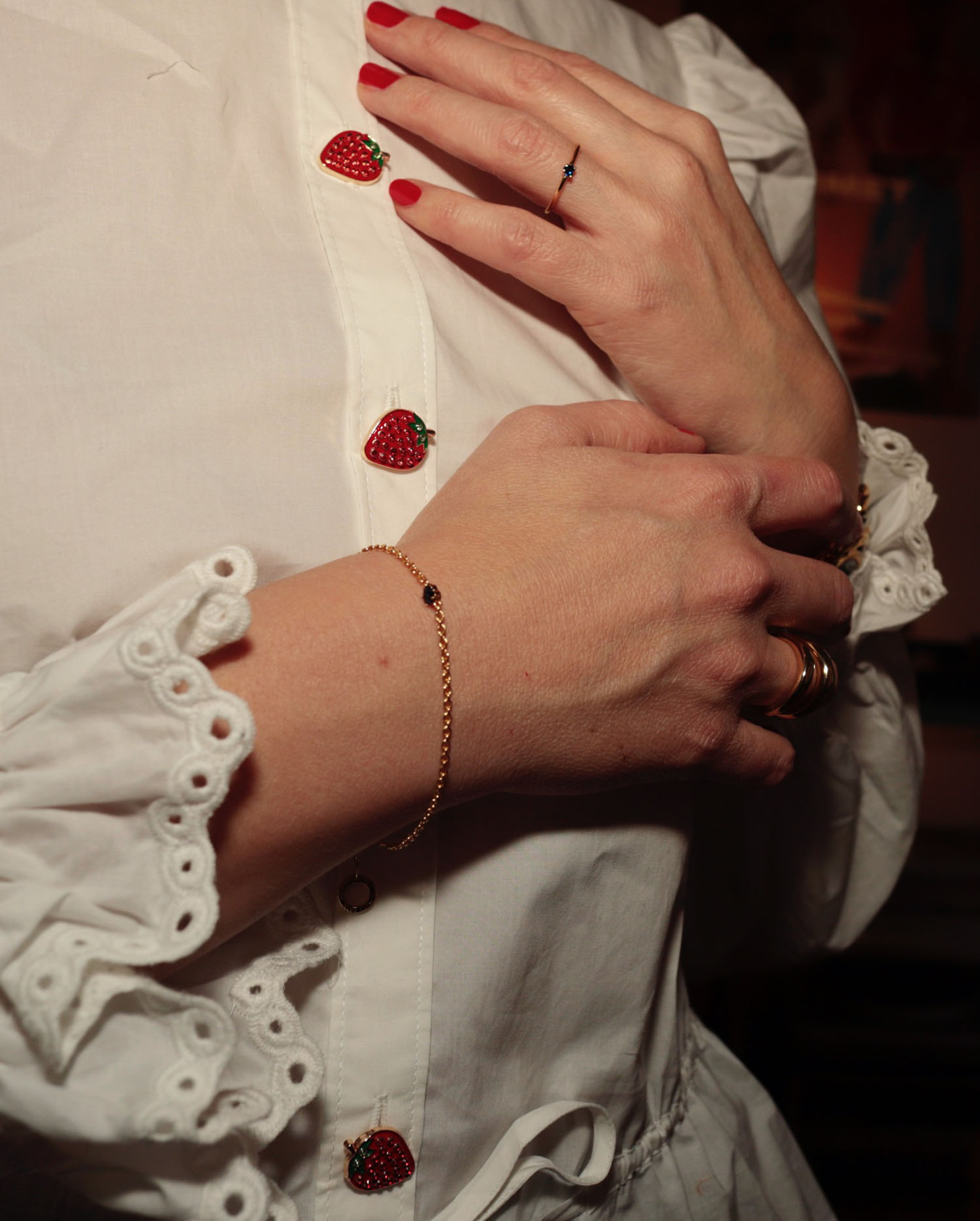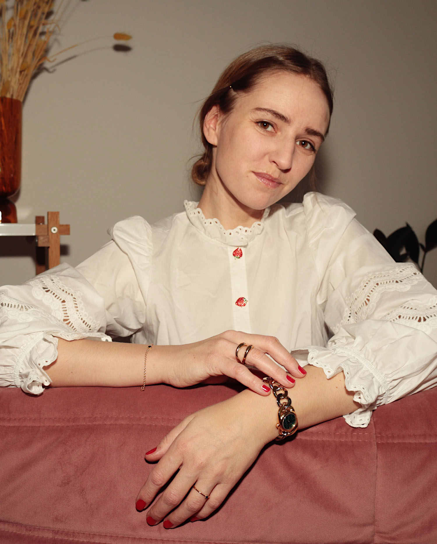 Shirt: Blanche, Kleid: Baum + Pferdgarten, Ring: Italo Feelings, Uhr: Missoni
