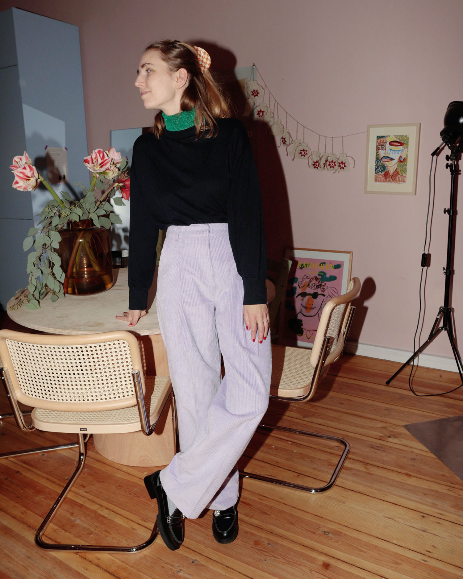 Rollkragen: Wolford (alt), Pullunder: Ganni, Hose: Edited, Loafer: Ganni, Uhr: Missoni, Ringe: Italo Feelings, Paul Hewitt