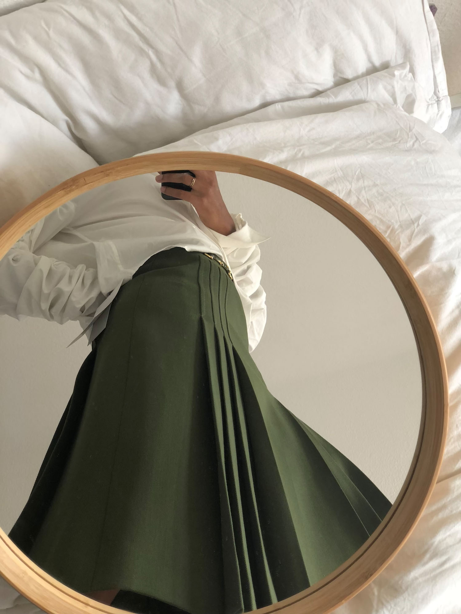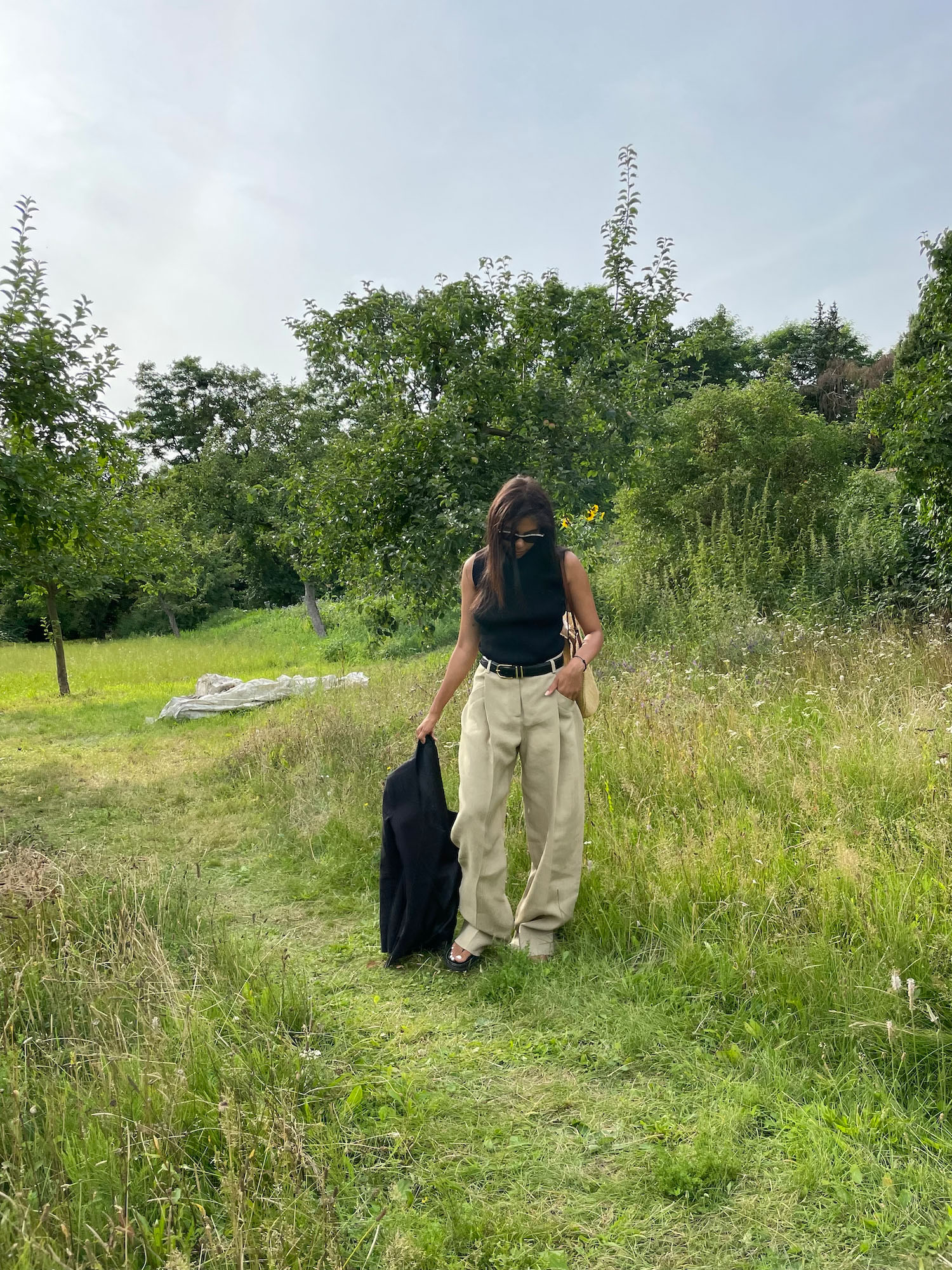 Diese Hose von Jaquemus habe ich letztes Jahr bei Yoox gefunden. Ich habe auf den Ausverkauft spekuliert und sie dann zu einem unschlagbaren Preis gekauft. Ich liebe diese Hose so sehr, vor allem weil sie jeden Look einfach sofort aufwertet — gerade als Mum habe ich nicht so viel Zeit, mir Gedanken über Outfits zu machen.