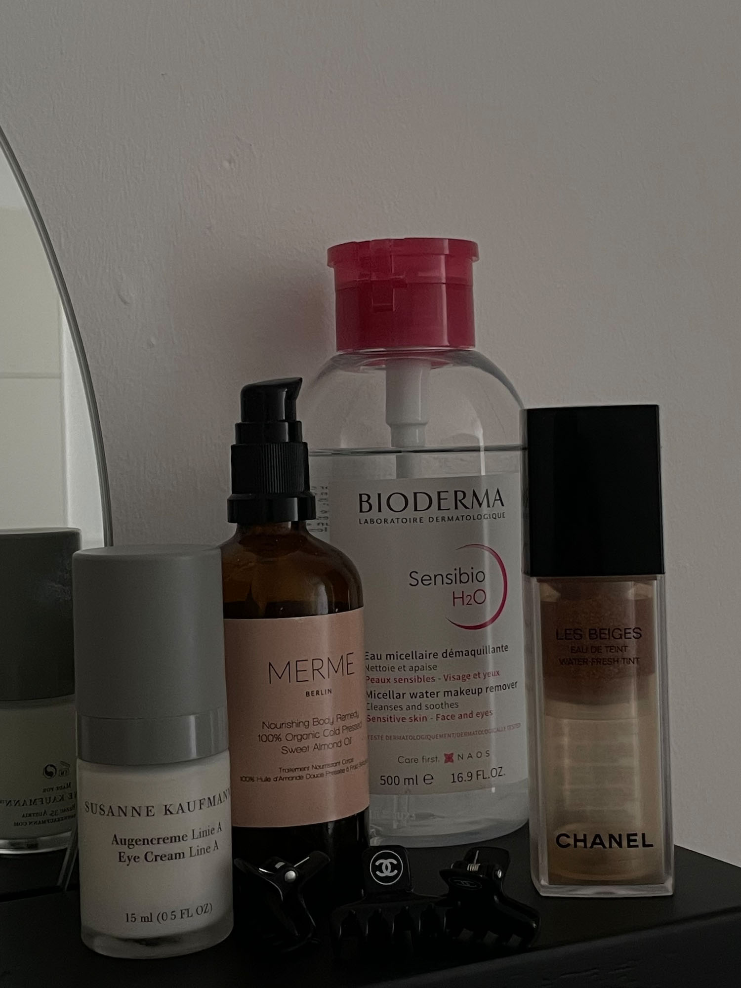 1) Das Mizellenwasser von Bioderma nutze ich schon mehrere Jahre lang. Es hat tatsächlich auch geholfen, meine sehr sehr ölige T-Zone wieder in den Griff zu bekommen. Ich nutze es als Wasserersatz zur Reinigung meines Gesichts, denn gerade weil das Wasser der Haut so viel Feuchtigkeit entzieht, wird meine Haut sehr trocken und produziert viel mehr Öl.