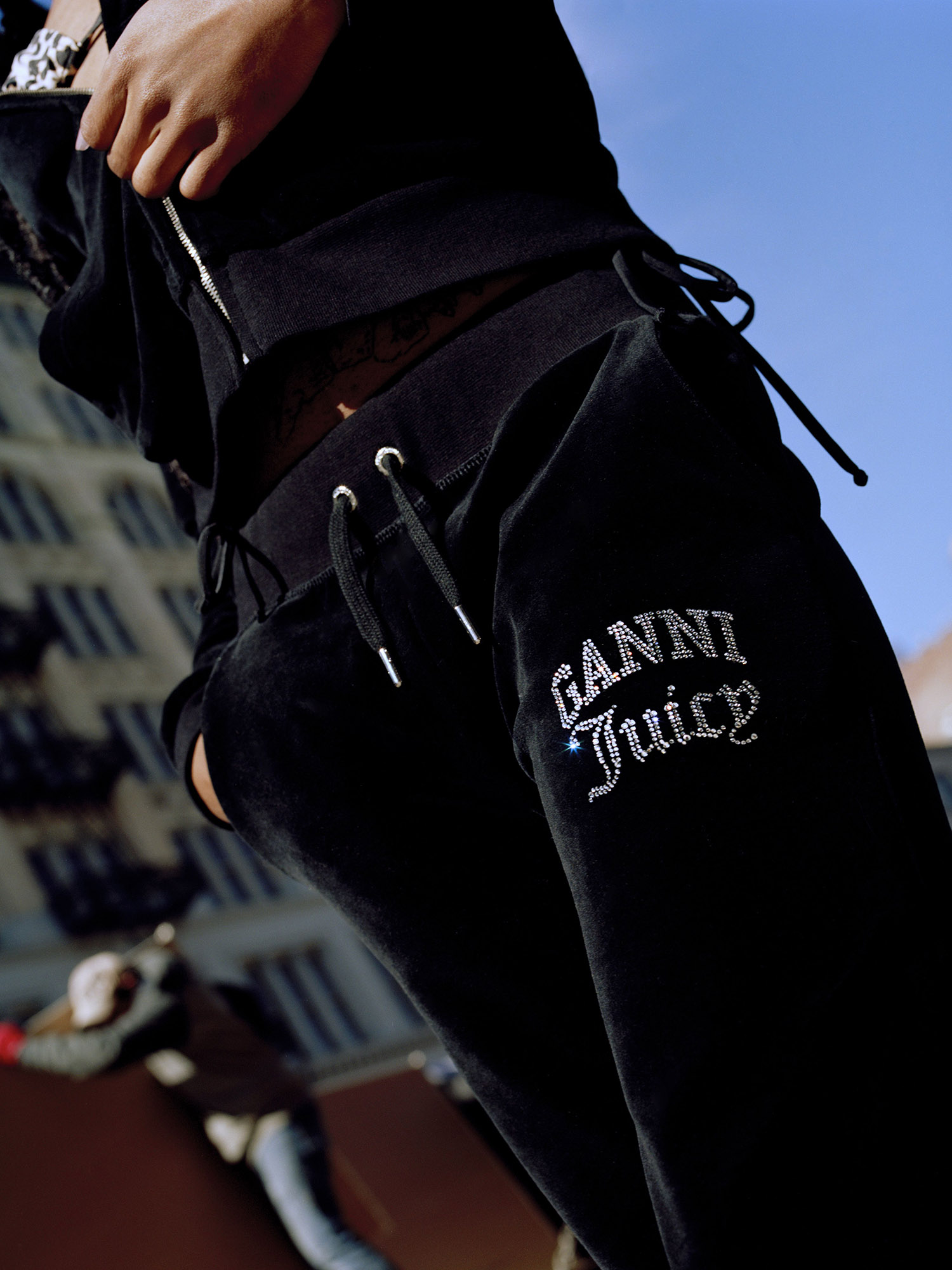 Kaum ein Kleidungsstück hat die frühen Nullerjahre so sehr geprägt wie der ikonische Velours-Trainingsanzug des aus Los Angeles stammenden Labels Juicy Couture: Paris Hilton, Lindsay Lohan, Nicole Scherzinger, Christina Aguilera – die It-Girls jener Zeit liebten den bequemen Jogger, der von Anfang immer haarscharf an der Grenze der Geschmacklosigkeit kratzte. Jetzt soll es aber ein gefeiertes Revival geben – und zwar ein ziemlich gutes: Mit dem aktuellen Y2K-Style Comeback in der Mode kommt auch das Kult-Label Juicy Couture zurück und hat in GANNI einen Partner gefunden, der die Promi Off-Duty Ästhetik von damals mit skandinavischer Coolness aufs nächste Stüfchen heben soll.