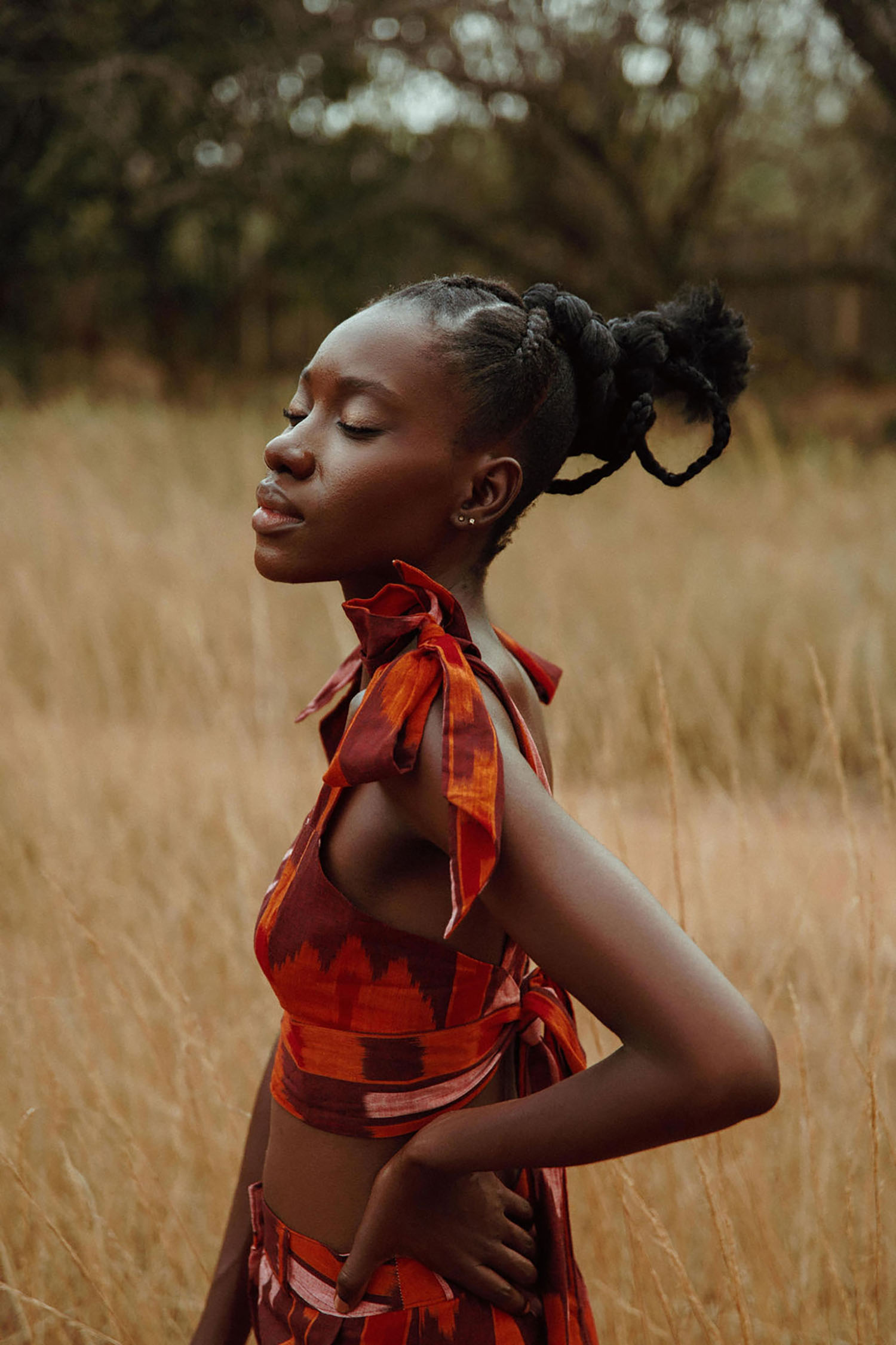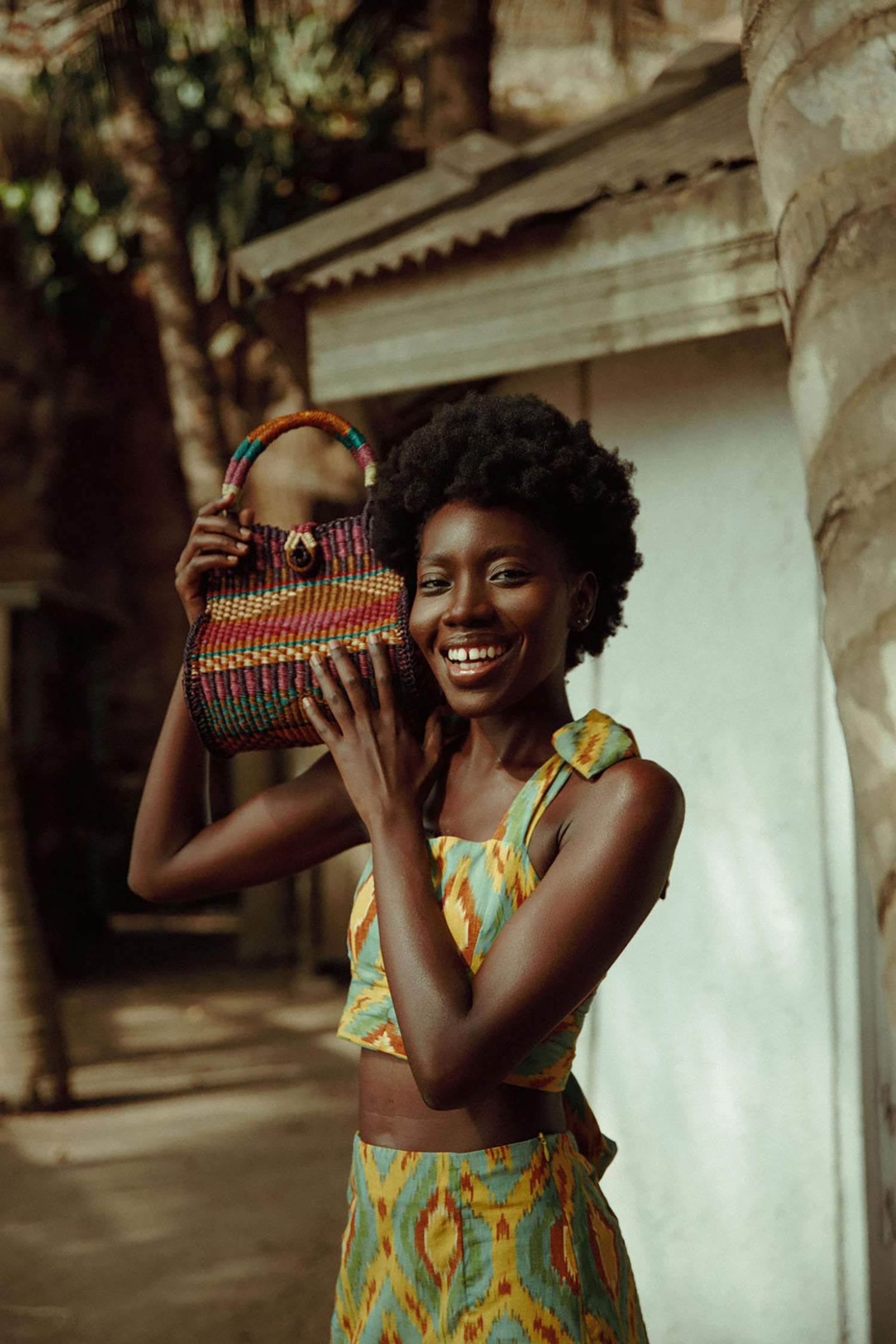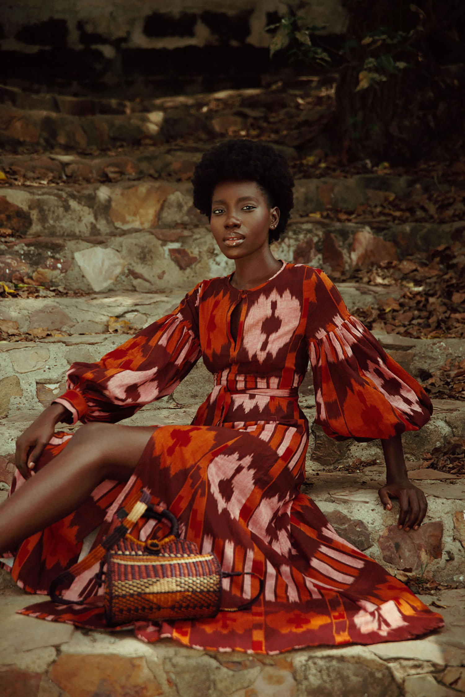 Die Designerin Jeanne de Kroons erzählt in dieser Saison nämlich die Geschichte der Frauen des Küstenlandes Ghanas, Westafrika. Sie lädt uns ein, hinzusehen, zu fühlen und zu erleben, die Kultur zu erkunden und die grandiose Handwerkskunst dieser Frauen zu verstehen: Und die finden wir nicht zuletzt in langen bemusterten Kleider sowie in den in Handarbeit geflochtenen Taschen.