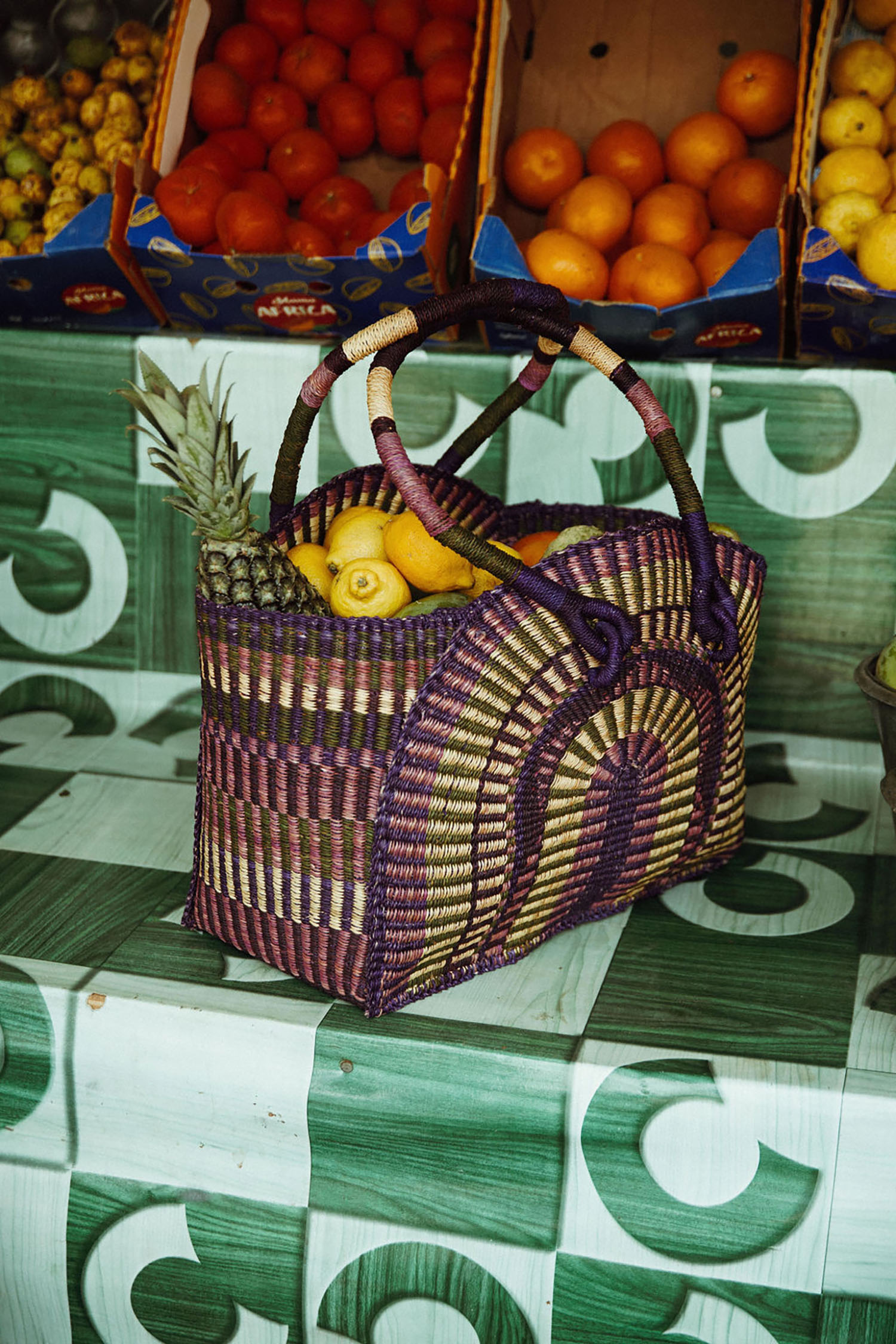 Hinter diesem wertvollen Kollektiv steht übrigens die Gründerin Docas Asige Apoore, die es sich zum Ziel gesetzt hat, Ausbildungszentren für Frauen und junge Menschen in Ghana einzurichten und ihnen eine nachhaltige Existenzgrundlage zu verschaffen. Damit erreicht sie mehr als 429 Frauen in sechs verschiedenen Gemeinden in Ghana durch eine Reihe von Initiativen und fördert mit der Unterstützung der Frauen die positive Zukunft Ghanans. Die Frauen bei ASIGE haben sich auf handgeflochtene Taschen und Körbe spezialisiert, in denen Generationen das wertvolle Wissen traditioneller Handwerkskunst, Techniken und Farben, zu Geschichten und Visionen der Zukunft verknüpfen.
