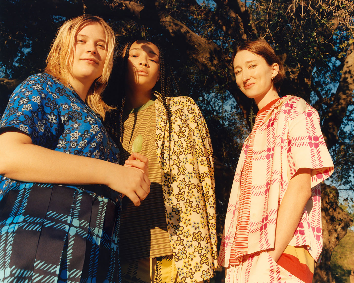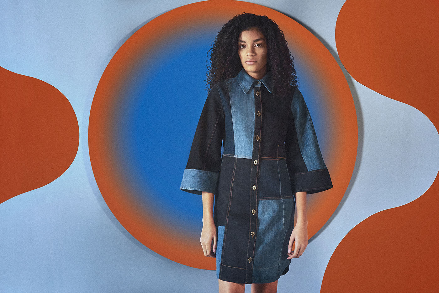 Und auch GANNI bleibt in Kollaborationswut und hat sich nach ihrer Juicy Couture Zusammenarbeit mit LVMH-Preis Gewinnerin Priya Ahluwalia erneut für eine gemeinsame Rework-Collab zusammengefunden, um mit charakteristischen 90s Silhouetten, Deadstock-Denim Patchwork Musterungen, Smiley- und Logo-Prints ein gefühlvolles Denim Universum zu kreieren. Die Kollektion umfasst Jeanshosen und -jacken, verschiedene Denim Blazer, Denim Kleider – mal klassisch im Hemdblusen-Stil, mal aufgefallen mit modernen Cut-Outs – Mini Röcke, Oberteile und Accessoires wie ein Denim Beret oder einen Bucket Hat.