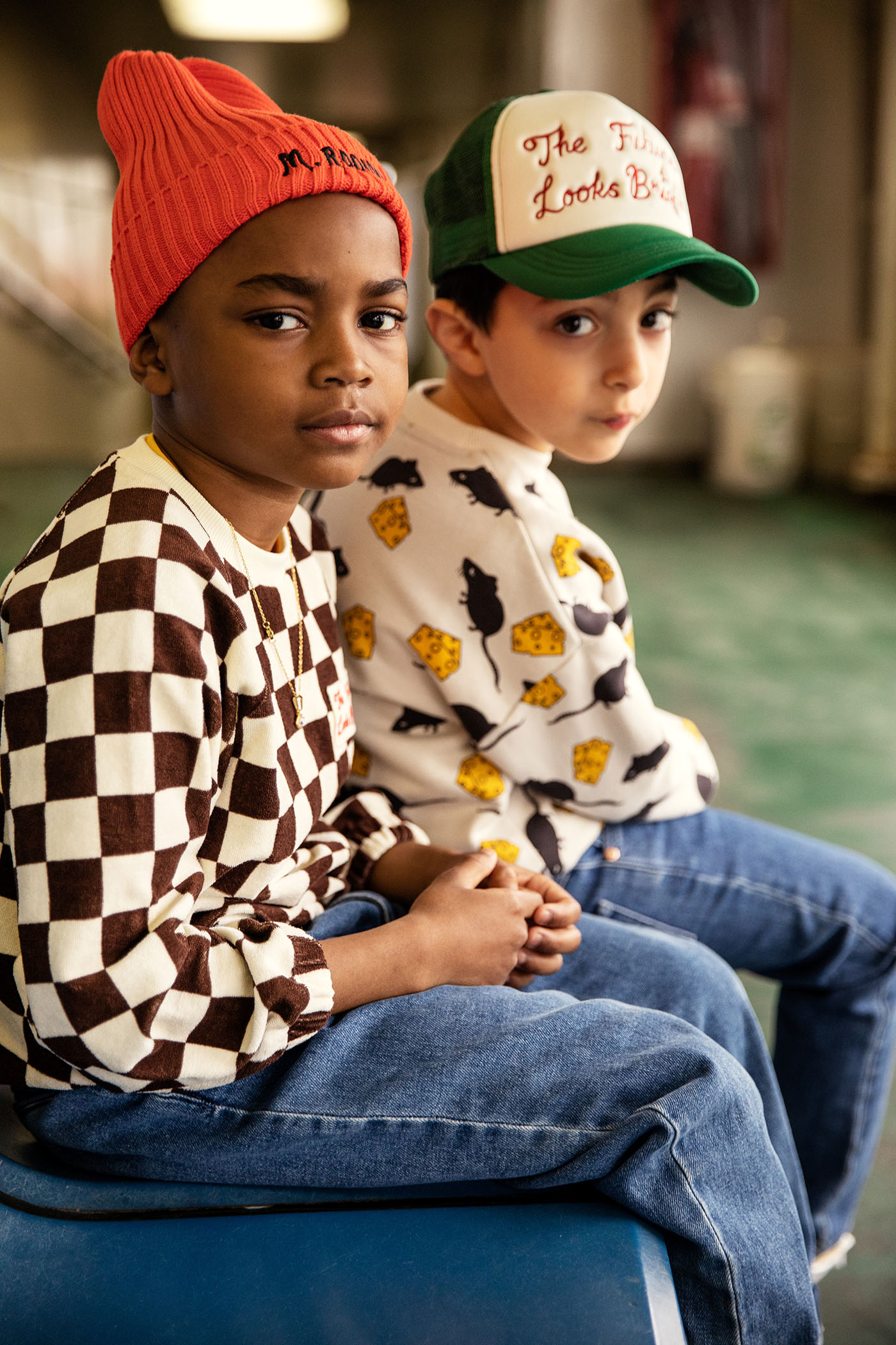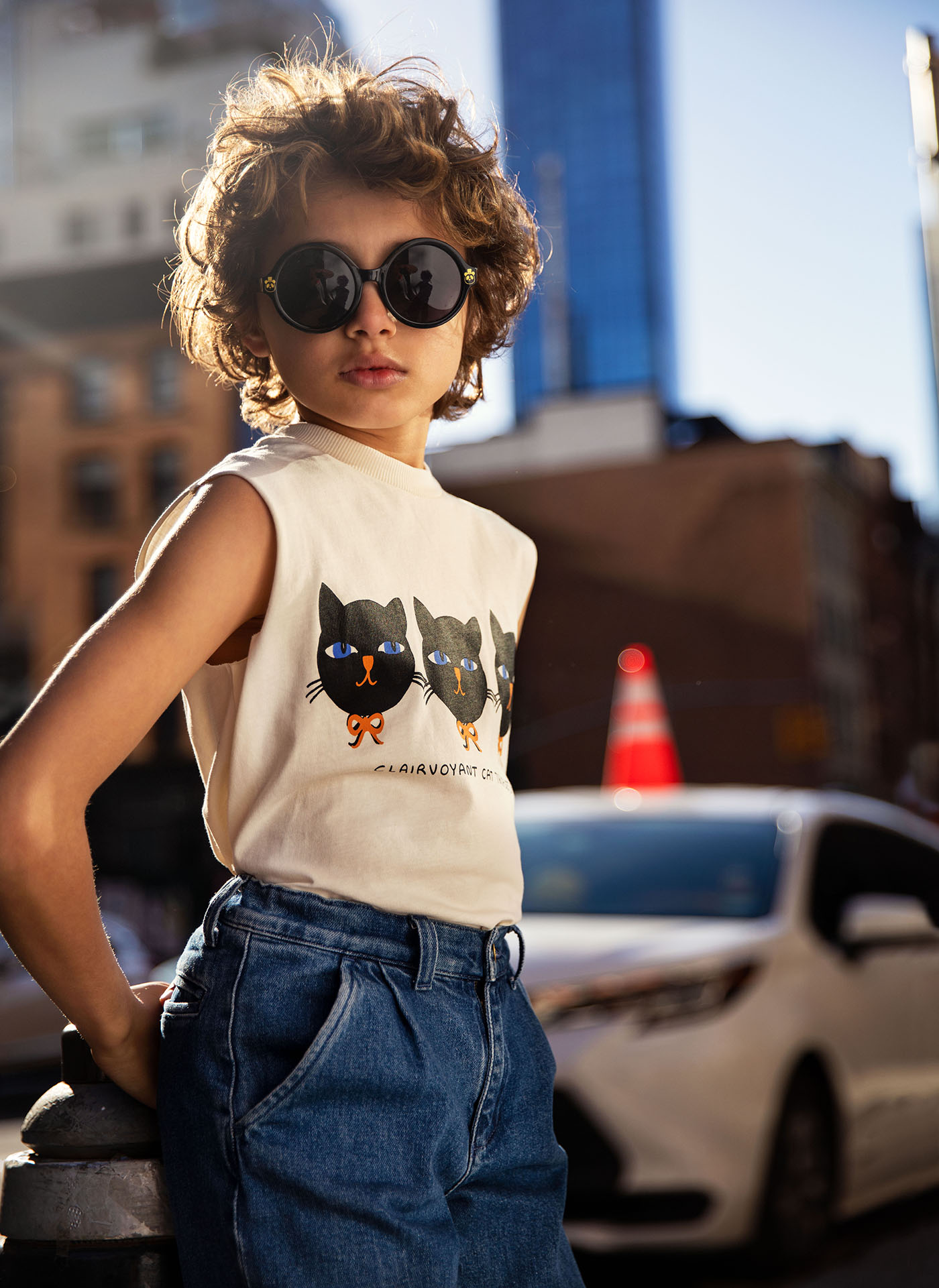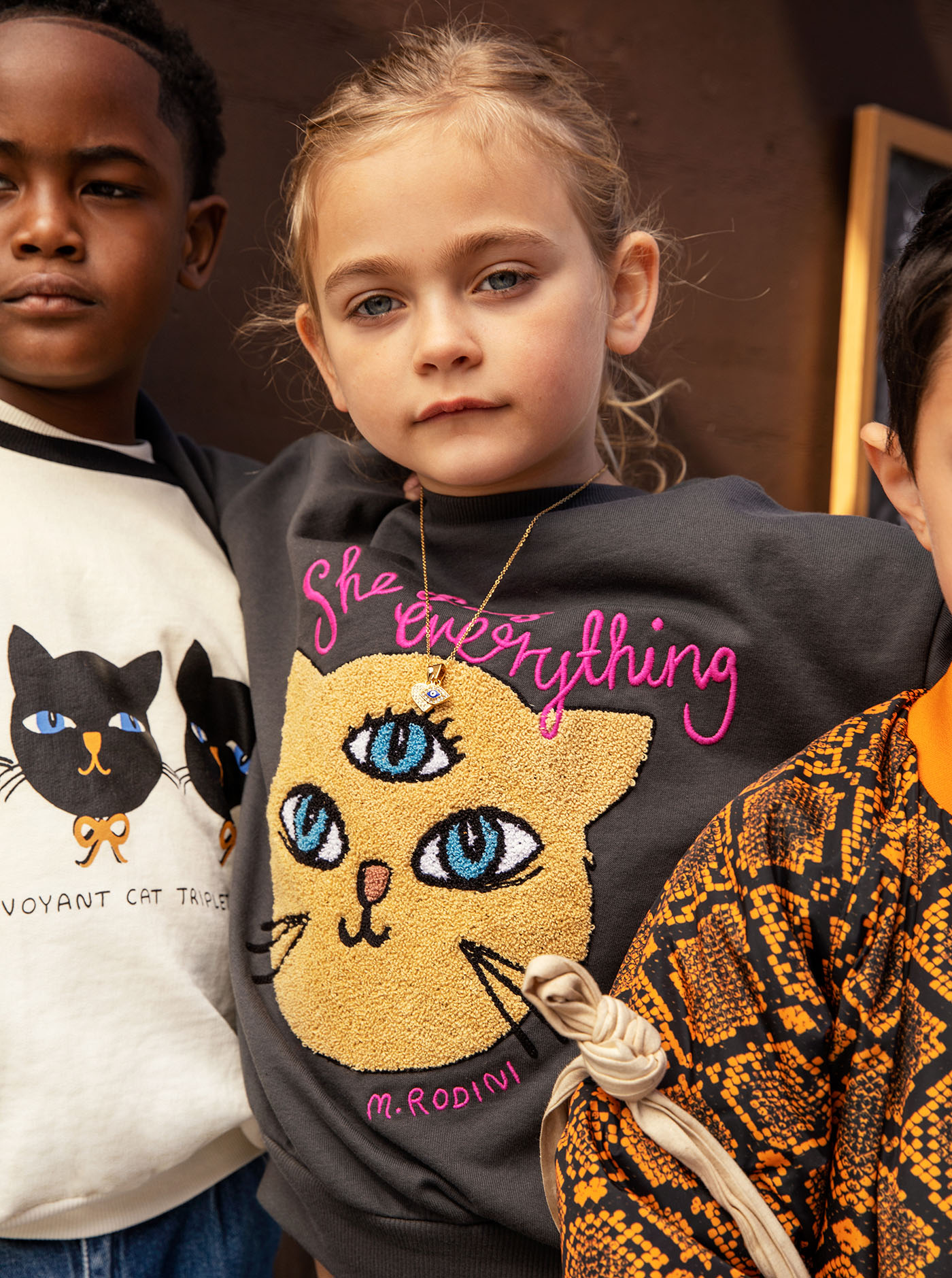 „Für ihre neueste Pre Fall 2022 Kollektion hat sich die Designerin von der kultigen Ära der 70er Jahre in New York inspirieren lassen: Rock’n’Roll, Glamour und Sporty Chic. Die Kollektion umfasst kultige Tanks, karierte Schachbrettmuster und City-Sailor-Looks in Erinnerung an Sonny und Cher, Debbie Harry und John Lennon. Die Designs erstrahlen in der New Yorker Farbpalette: Taxi Gelb, Big Apple Rot, Asphalt Schwarz, Hamptons Blau. Alle Prints sind original Illustrationen, gezeichnet von Cassandra Rhodin. Die gesamte Kollektion besteht zu 100 Prozent aus innovativen Materialien wie zertifizierter Bio-Baumwolle und Wolle sowie recyceltem Polyester und Polyamid. Die neue Bademode wurde aus regeneriertem ECONYL®-Nylon hergestellt, einem nachhaltigen Material, das Meeresabfälle wiederverwertet. Mit einem Anteil an nachhaltigen Materialien von 99,5% jährlich verfügt Mini Rodini über eines der nachhaltigsten Produktsortimente, die es auf dem Markt gibt.“