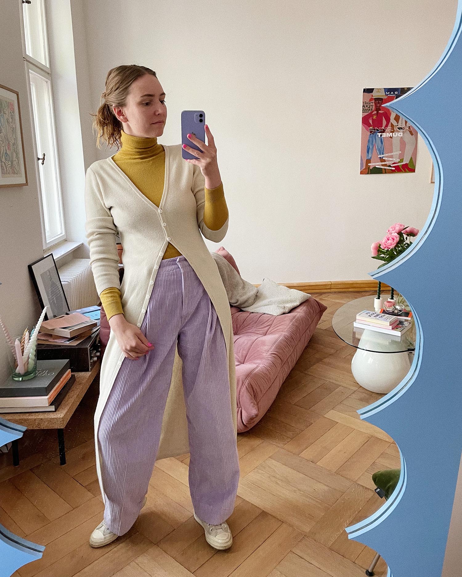 Rollkragen: Lacoste (alt), Cardigan: Jan’n June x Rauwm, Hose: Stine Goya (älter), Schuhe: Chucks x Comme des Garçons