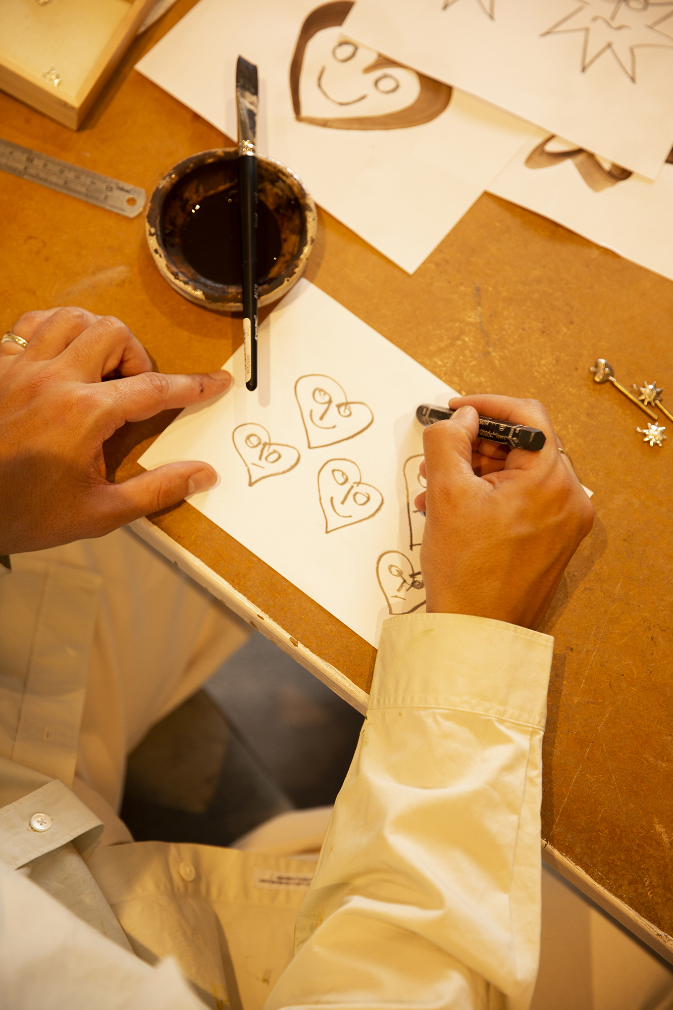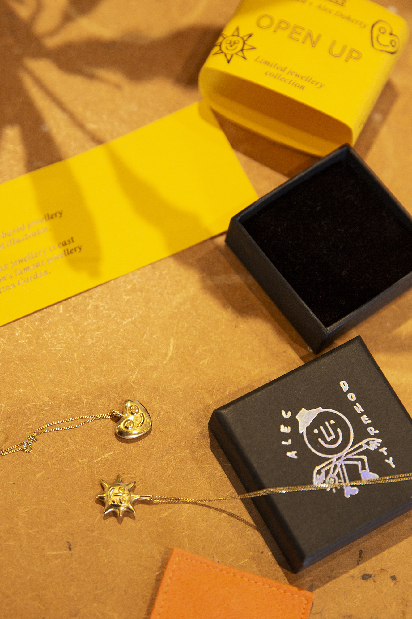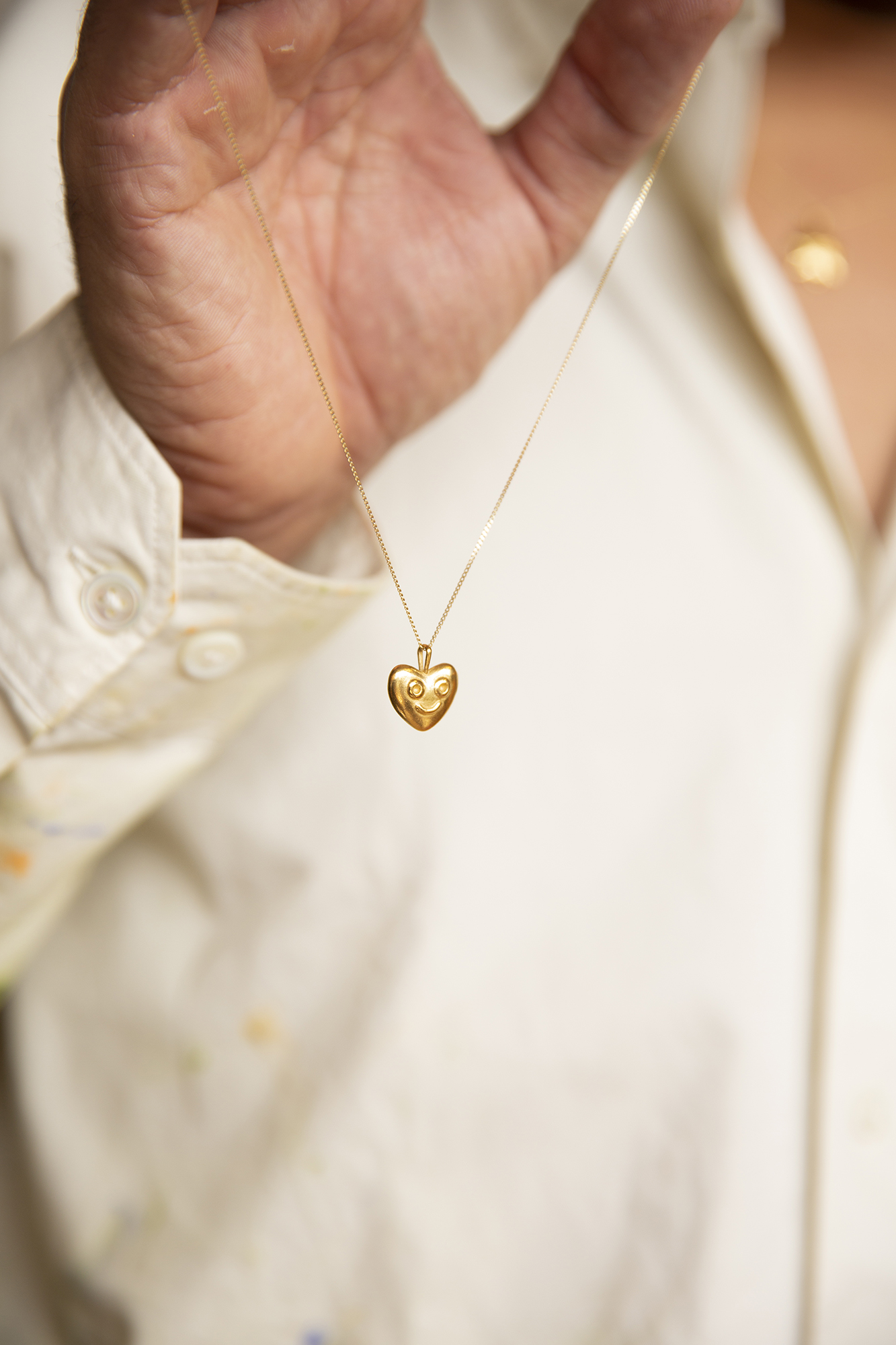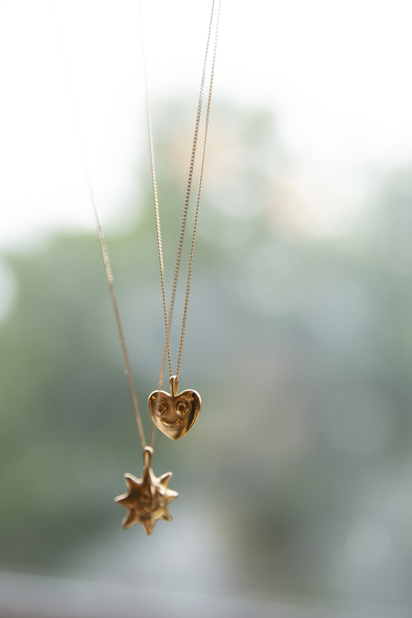 CLOSED hat sich für eine weitere Schmuckkollektion erneut mit einem grandiosen Künstler zusammengetan und sich für eine neue, exklusive Kollektion den Londoner Schmuckdesigner Alec Doherty geschnappt, um zwei verschiedene, handgemachten Ketten zu kreieren, die sich unserer Stimmung anpasst: Die beiden Charms In Herz- und in Sternform tragen zwei Gesichter und können je nach Gemütszustand von beiden Seiten getragen werden. Beide Anhänger sind aus vergoldetem Silber, die zarte Kette dazu aus 9 Karat Gold.