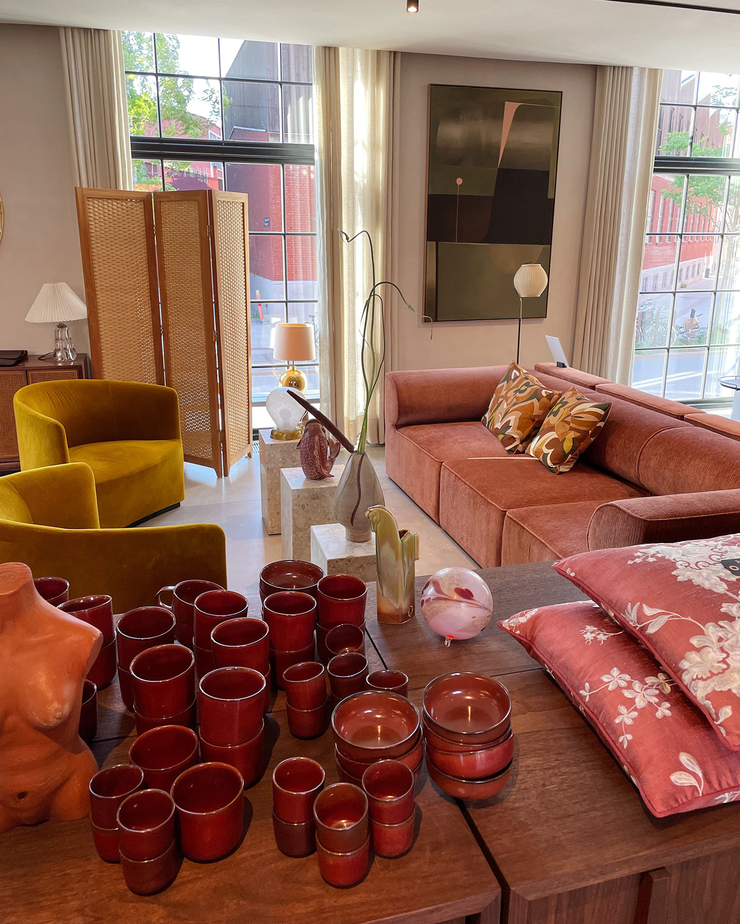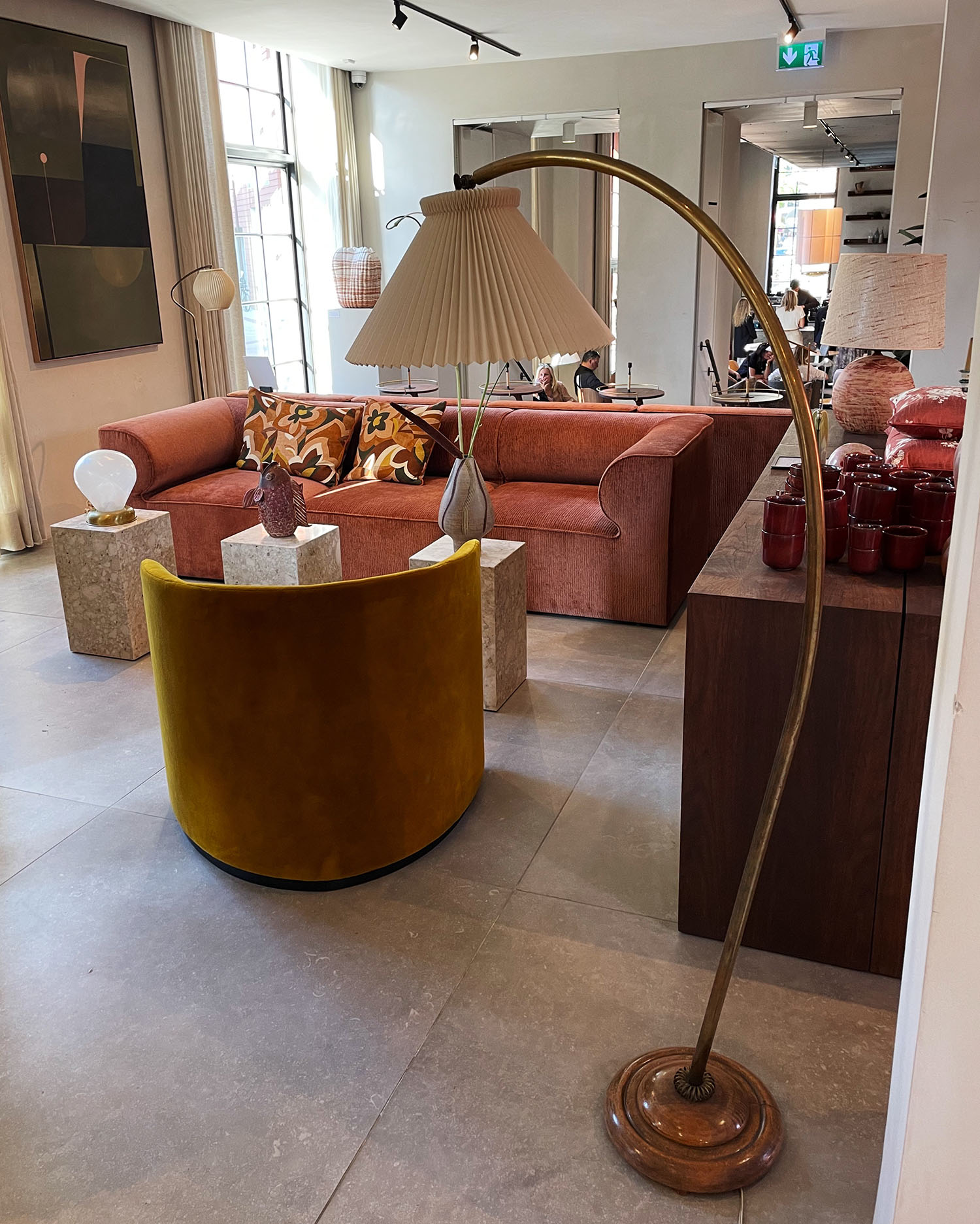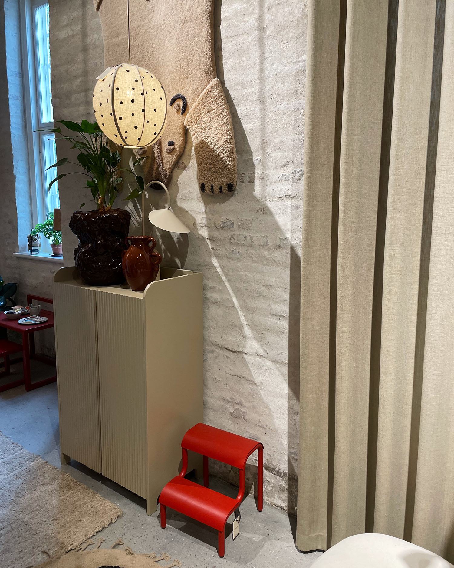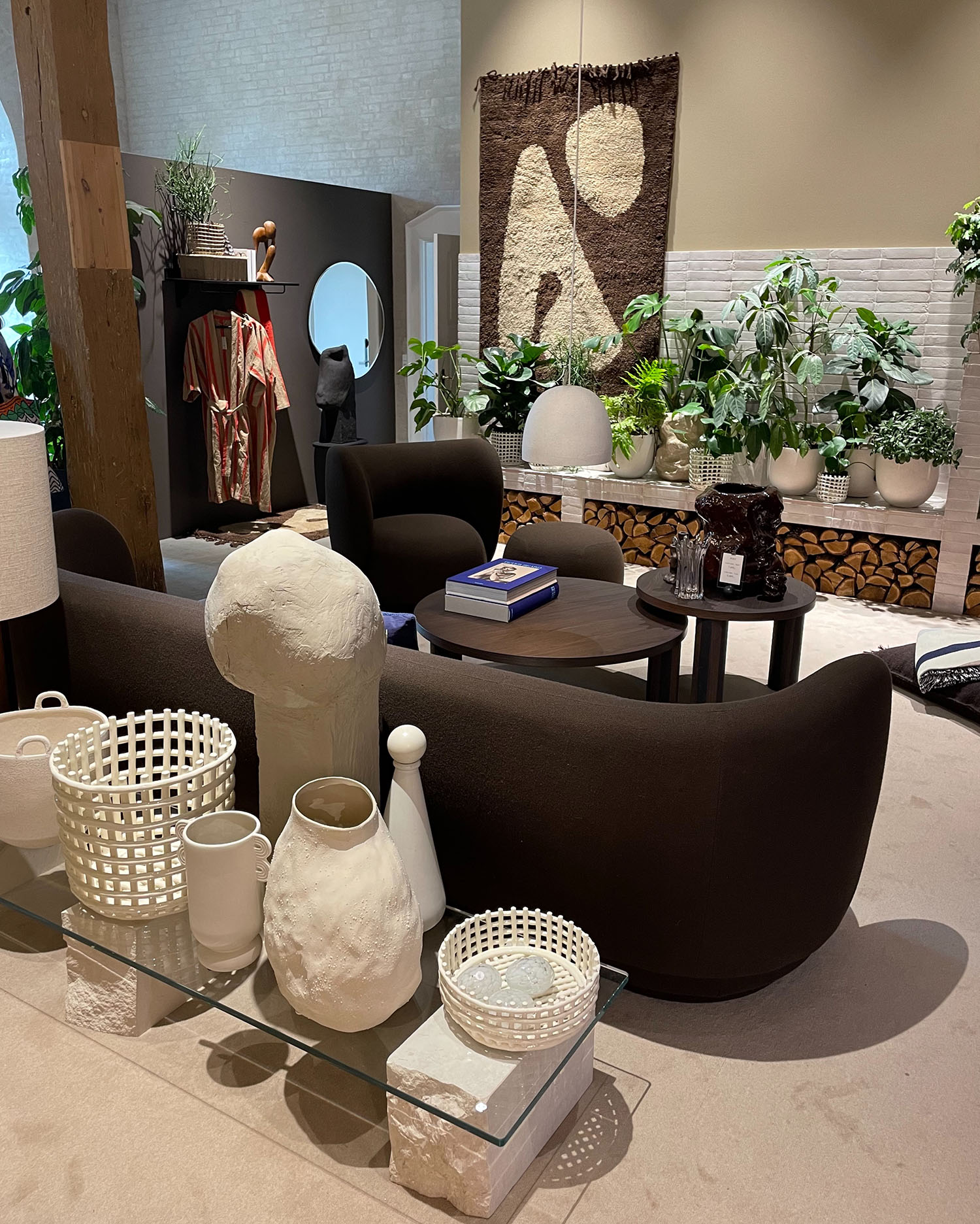 Wie immer finden wir in den heiligen Räumlichkeiten von MENU auch das dänische Label By Lassen und die Designkreationen der Brüder und Architekten Mogens Lassen und Flemming Lassen wie zum Beispiel das Ingeborg Sofa oder die ikonischen Tischlampen in Schwarz, Bronze und Silber.