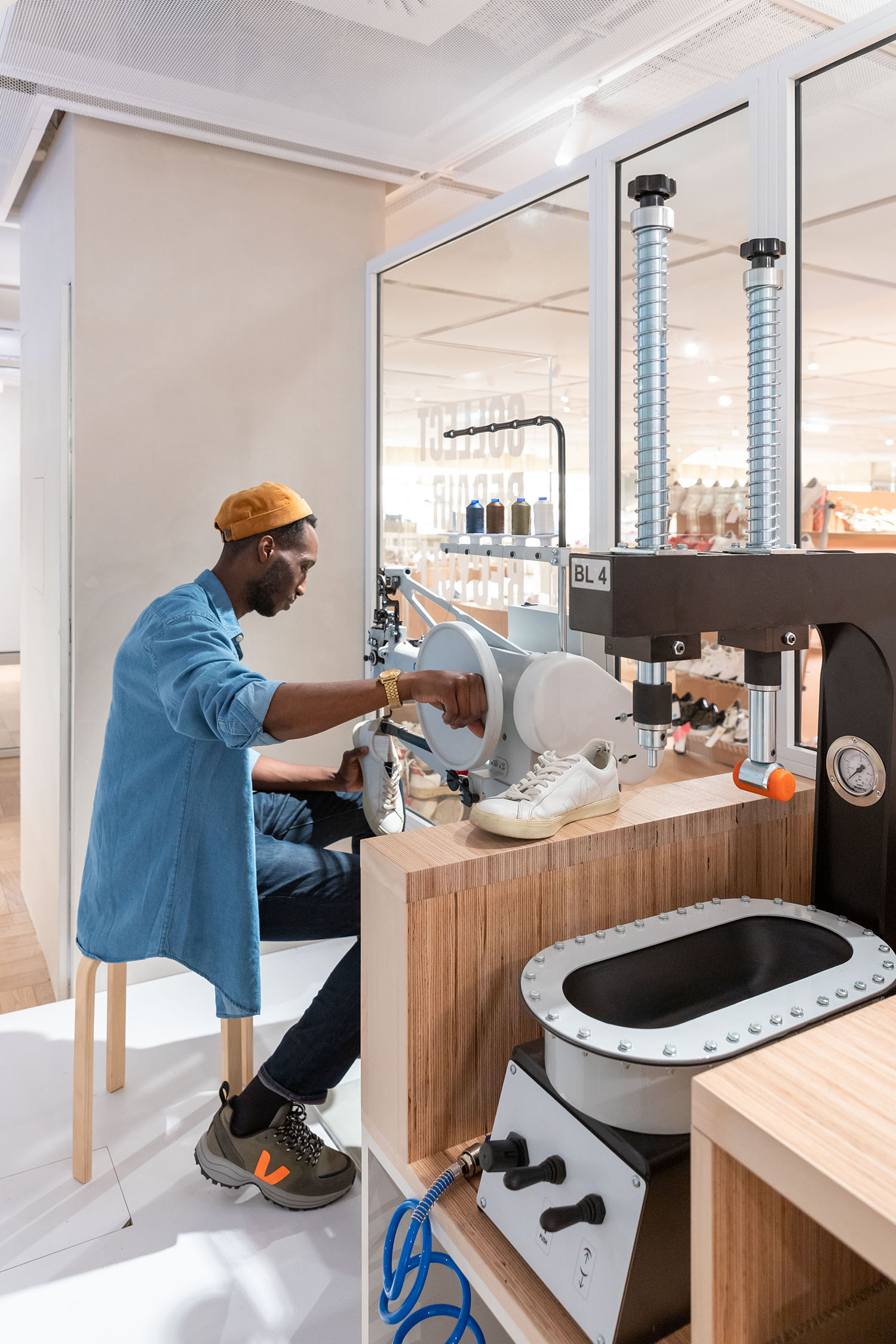 Im Juli 2021 wurde in Paris in den Galeries Lafayette eine neue Schusterwerkstatt eröffnet und bislang wurden mehr als 2.800 Schuhe repariert. Berlin ist ein wichtiger Ort in der Geschichte von VEJA: Es ist eine der ersten Städte, in der das VEJA-Projekt vor 17 Jahren mitstartete. Eine der ersten Städte, die VEJA damals willkommen geheißen und von Anfang an, an sie geglaubt hat. Deshalb eröffnet VEJA sein neues Geschäft direkt im zentralen und historischen Bezirk Mitte, in der Alten Schönhauser Straße, einer der ikonischen Straßen der deutschen Hauptstadt.
