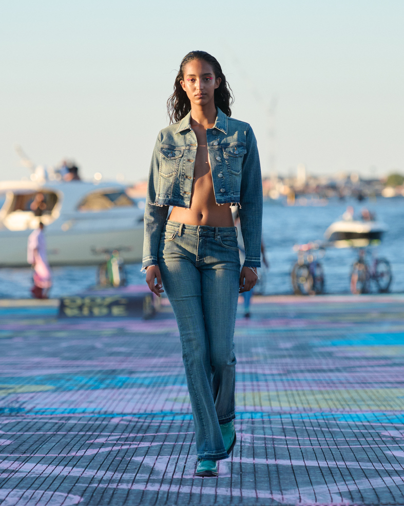 Die 00er Jahre sind es also, die den naiven Flair der 70er Jahre nun endgültig abzuwechseln scheint. Zwar behaupten Ganni und Levi’s, ihre gemeinsame Kollektion sie von der Liebe zur Gartenarbeit und Mutter Natur inspiriert, ich hingegen sehe da eher frühe VIVA-Jahre und einen Hauch Christina Aguilera durchblitzen. Meine mehr als zehn Jahre jüngeren Schwestern werden bei diesen Zeilen vermutlich mit den Augen rollen. Sie finden, ich müsse endlich mal im Jetzt ankommen. Also gut: So also sieht das Denim der Zukunft aus: