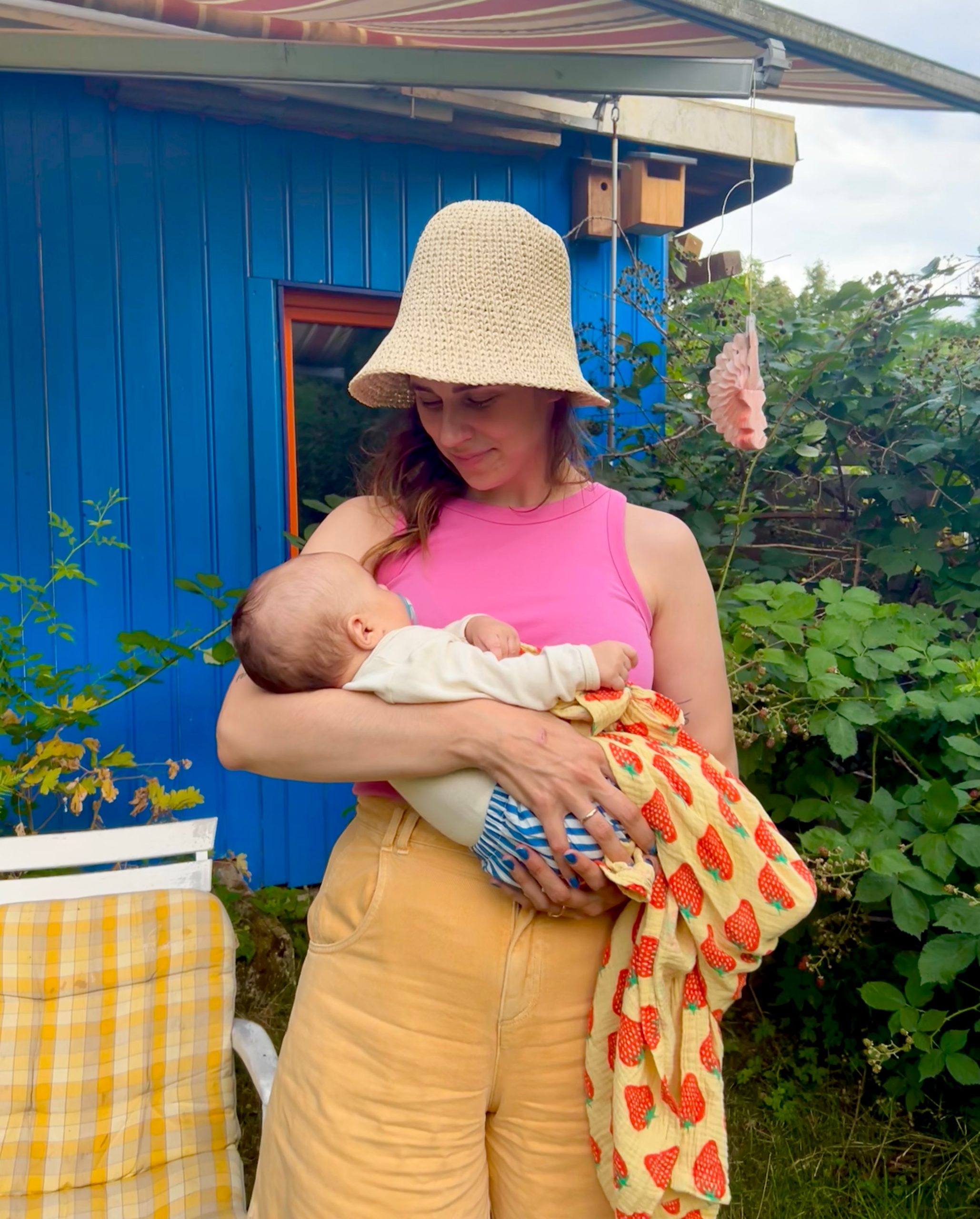 Nun würde ich natürlich trotzdem gern mit spannenden Anekdoten rund um meine Kleiderwahl aufwarten, aber ich sage euch, wie es ist: Nichts gegen meinen neuen Körper – er passt nur wirklich kaum mehr in meine Lieblingstücke, deshalb bin ich gerade tendenziell sehr schnell und unspektakulär zufrieden zu stellen: Hauptsache es ist gemütlich, wackelt und hat Luft. Das Motzen verkneife ich mir aus guten Gründen. Stattdessen bleibe ich dankbar und versuche ausschließlich Outfits zu tragen, die mich weder zwicken noch in Sinnkrisen stürzen. Mein neues, ebenfalls sehr unspektakuläres, aber absolut effektives Motto des Monats lautet nämlich: Scheiß drauf.