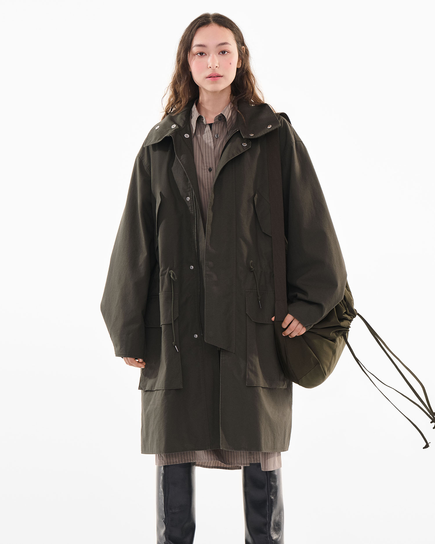 Am Anfang stand die Idee einer Capsule Collection, die in einen einzigen Koffer passt und so flexibel designt ist, dass sie durch eine ganze Saison begleitet – mit Essentials, die besonders für Funktionalität und Vielseitigkeit stehen. Das Besondere: Die Designteams für Damen und Herren haben zusammen gearbeitet, um eine Kollektion mit geschlechtsneutralen Kleidungsstücken zu entwerfen, wie z. B. den praktischen langen Mantel mit Beutel zum Verstauen und die von der Arbeitskleidung inspirierte kurze Blousonjacke, die sich zwar in der Größe, nicht aber im Design unterscheiden und einen zeitgemäßen Ansatz für Kleidung widerspiegeln. Weite Silhouetten eignen sich für verschiedenste Körpertypen und lassen sich mühelos kombinieren. Das Ergebnis seht ihr bei uns und schon ganz bald in den Stores und online!