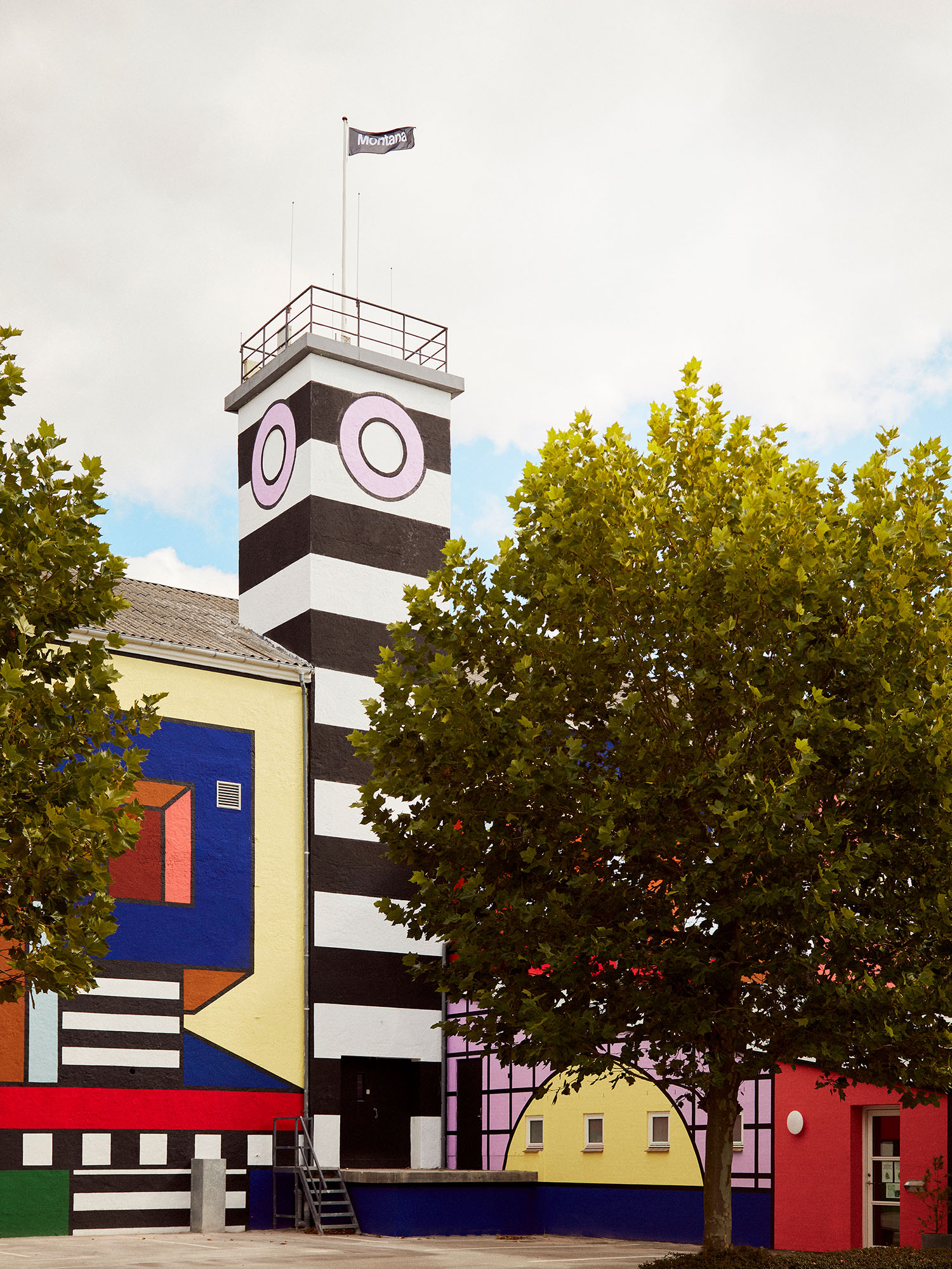 Das Montana, das wir heute so lieben, feierte 1982 also seine zweite Geburtsstunde! Ein Systemdesign mit Form und Funktion, das seither völlige Freiheit bietet, persönliche Gegenstände zu inszenieren und zu organisieren – um dabei gleich selbst das schönste Objekt des Raumes zu sein. Der Claim „Making Room for Personality“ wurde zum Motto dieser neu geschaffenen Freiheitsbox. Und mit ihrem aktuellsten Motto „Let’s create playful spaces“ will Montana die Welt eben dazu ermutigen, mehr Farben zu verwenden. Doch das konnten sie nicht tun, ohne selbst mit gutem Beispiel voranzugehen. Daher mussten sie die eher langweilig aussehende Fabrik, die einstige Marmeladenfabrik, in ein farbenfrohes Statement verwandeln – so farbenfroh und verspielt wie die Möbel, die sie dort herstellen, so CEO Joakim Lassen, Sohn des verstorbenen Gründers Peter J. Lassen. Grund genug also, Studio Walala anzurufen: