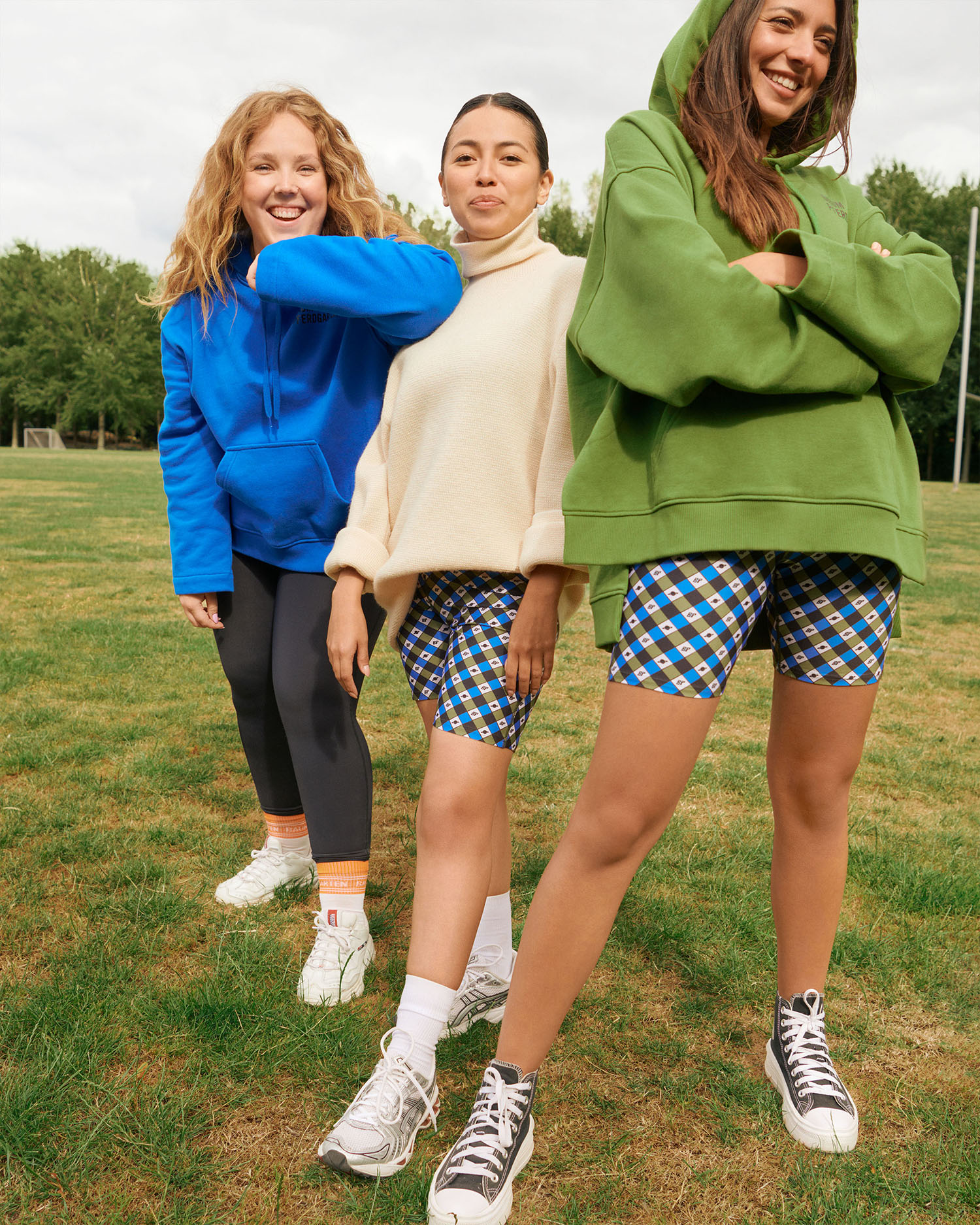 Alle Modelle sind aus einem nachhaltigen Tech-Stoff gefertigt, der aus recycelten Fischernetzen und anderen Meeresabfällen gewonnen wird. Als Ergänzung zu den Stücken der Kollaboration umfasst die Capsule auch einen übergroßen Hoodie aus Bio-Baumwolle sowie einen locker geschnittenen Pullover. Die Capsule ist für Yoga, Laufen, Sport – oder einfach zum Entspannen und Genießen gedacht.