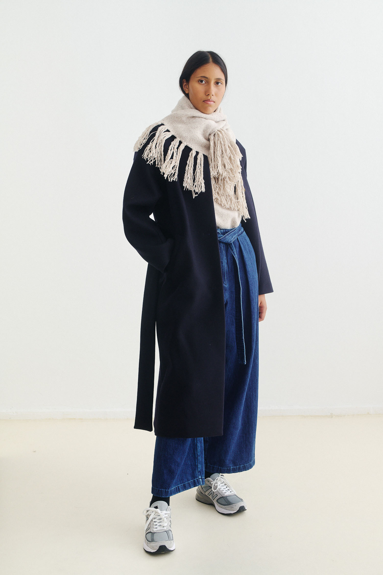 AKOG, besser bekannt als das Münchener Label A Kind of Guise, nimmt uns diesen Winter mit in die Berge, zu grandiosen Abenteuern und bislang unberührten Bergen – zumindest bildlich gesehen. Die Berge selbst galten nämlich als Inspirationsquelle für ihre frisch gelaunchte Herbst/Winter Kollektion „Road to Nowhere“: Und das sieht man auch in den Farbcodes, den Workwear-inspirierten Stücken und in der weiten Silhouette, die für maximale Gemütlichkeit sorgen soll. Harris Tweed Stoffe treffen auf Cashmere und Merinowolle und das Denim kommt in dieser Saison wieder einmal gänzlich ohne chemisches Finishing aus.