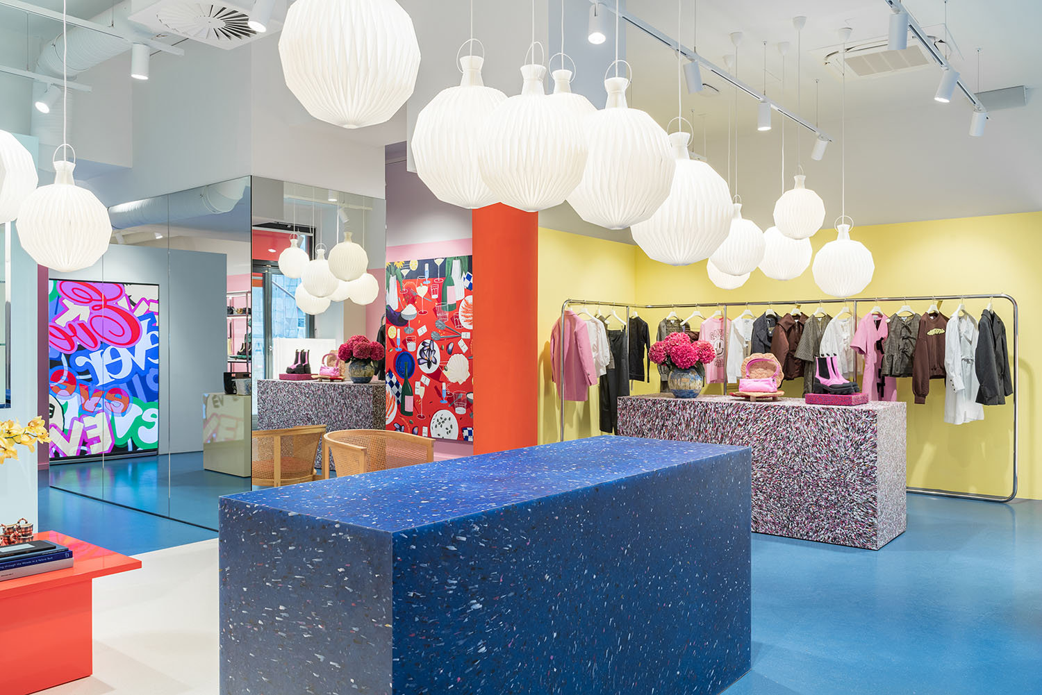 Das war einfach nur schön! Ganni öffnete bereits vergangene Woche in Berlin-Mitte auf der Rochstraße 1 und wer bislang noch nicht die Gelegenheit hatte, dem ersten Deutschland-Store einen Besuch abzustatten, sollte das ganz bald nachholen, denn dieser Store steckt voller Überraschungen, schönsten Ganni Stücken und lädt nicht nur mit seinem grandios nachhaltigen Interior Konzept zum Verweilen ein, sondern auch dank der so wunderbar diversen Mitarbeiter*innen. Ein Store zum Entdecken, voller hübscher Interior-Perlen und natürlich einem ziemlich schönen Gemälde von Isis Maria Niedecken. Die Keramikerin Sisi Tonia hat in Zusammenarbeit mit GANNI außerdem eine limitierte Auflage von Espressotassen-Keramik kreiert, die die ersten Kund:innen, die mehr als 300 Euro ausgeben, erhalten werden. Anlässlich der Eröffnung des Stores wurden zudem 40 einzigartige, limitierte T-Shirts mit ikonischem Berlin- Smiley exklusiv im Berliner Store verkauft. Schön war’s, liebe Gannis. Sooo pretteeey. Aber seht selbst: