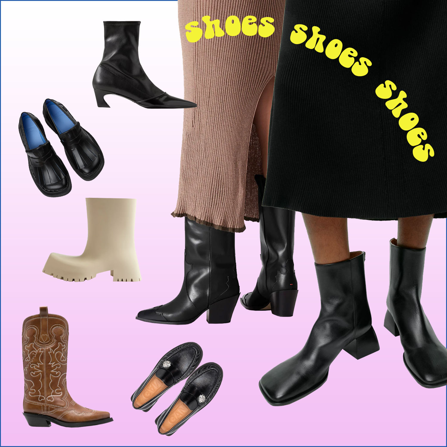 Ich muss gestehen, dass ich selbst nicht schlecht staunte, als ich meine vor allem sehr dunkle Auswahl noch einmal musterte. Ein Gegencheck in den Online Stores zeigte allerdings: Tatsächlich sind die meisten Modelle aktuell schwarz. Ist natürlich auch logisch, im Herbst und im Winter, wenn der Boden eher nass und dreckig ausschaut, aber jetzt mal ganz ehrlich: Ein paar mehr Farbunterschiede hätte ich mir schon gewünscht. Nunja, dafür habe ich mich auf die verschiedensten Formen konzentriert und die reichen von Schnabelschuhen, über Western-inspirierte Modelle bis hin zu klobigen Boots. Ein Modell für euch dabei oder bleibt ihr in dieser Saison bei eurem hübschen Modell aus den vergangenen Jahren, hmm?