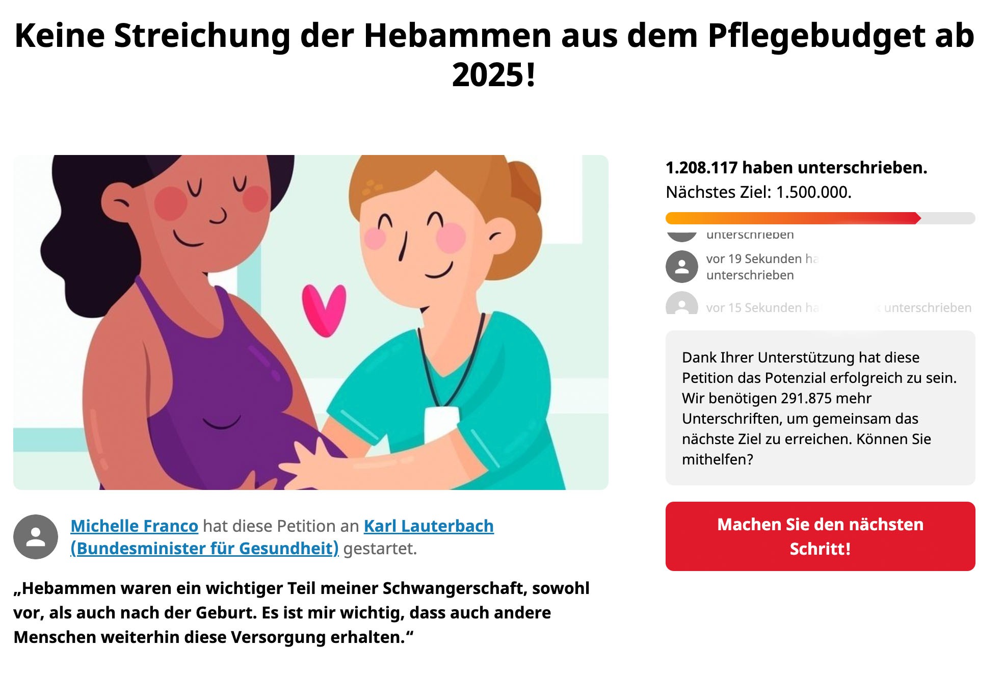 Online Petition: Keine Streichung der Hebammen aus dem Pflegebudget ab 2025!