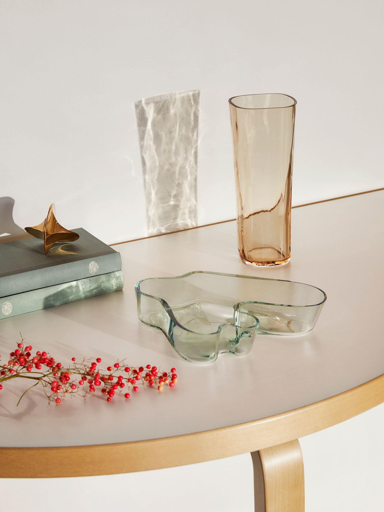 Im kommenden Jahr feiert Iittala den 125. Geburtstag von Alvar Aalto, Designer der ikonischen Alvar Aalto Kollektion, mit zwei neuen Vasen und einer Schale. Die ursprüngliche Formen und Designs von Aino und Alvar Aalto werden in dieser Kollektion neu eingeführt und orientieren sich farblich an der Originalfarbe Rio-Braun aus den 1930er Jahren. Die Designstücke werden im Jahr 2023 in limitierter Auflage erhältlich sein.