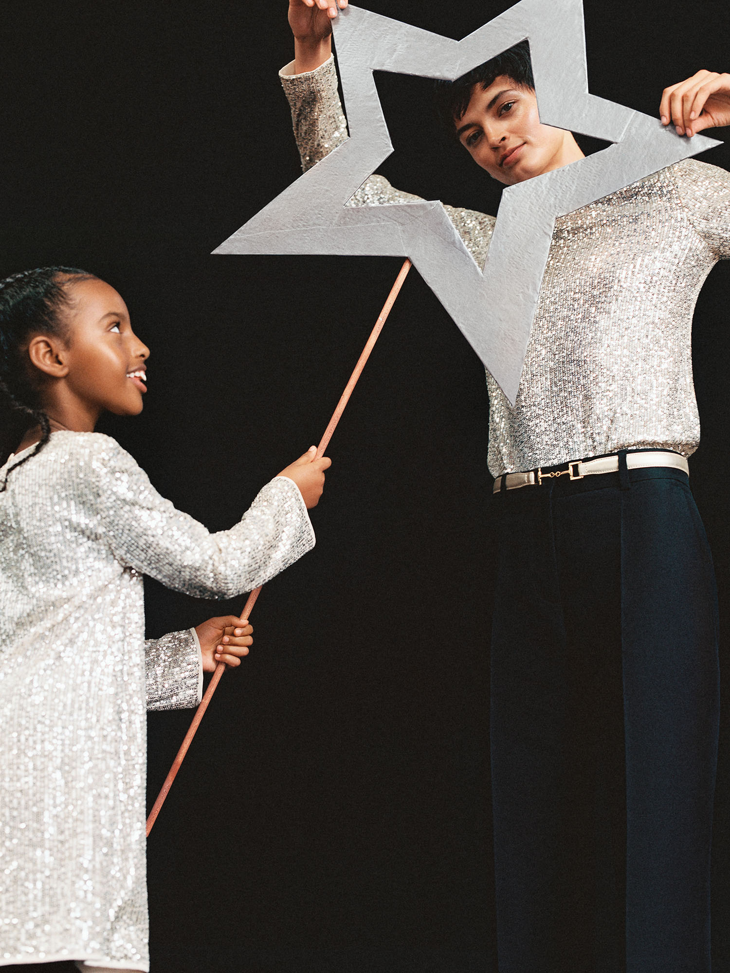Wer bei Festtagskleidung an den ungeliebten Kommunionsanzug denkt, an angenähte Krawatten oder unbequeme Lackballerinas, der wird mit der neuen ARKET Festive Collection für die Kleinsten eines Besseren belehrt: Dem gemeinsamen Spiel und Spaß gewidmet, zeigt der neueste Edit eine Reihe bequemer und zugleich besonderer Looks, die unsere Kids am liebsten jeden Tag tragen möchten – und das natürlich über die Festtagssaison hinaus! Den Ballerina-Tüllrock möchten wir am liebsten mopsen. Aber Moment mal, den gibt es ja sogar für die Großen. Überhaupt sind Mini-Me-looks wie eben bei dem Tüllrock erwünscht. Auch Pailletten-Kleider wurden einmal in Kindergröße und einmal als erwachsene Variante interpretiert. Für Familienfeiern und gemeinsame Fotos, für Momente mit Augenzwinkern und ganz viel Spaß.