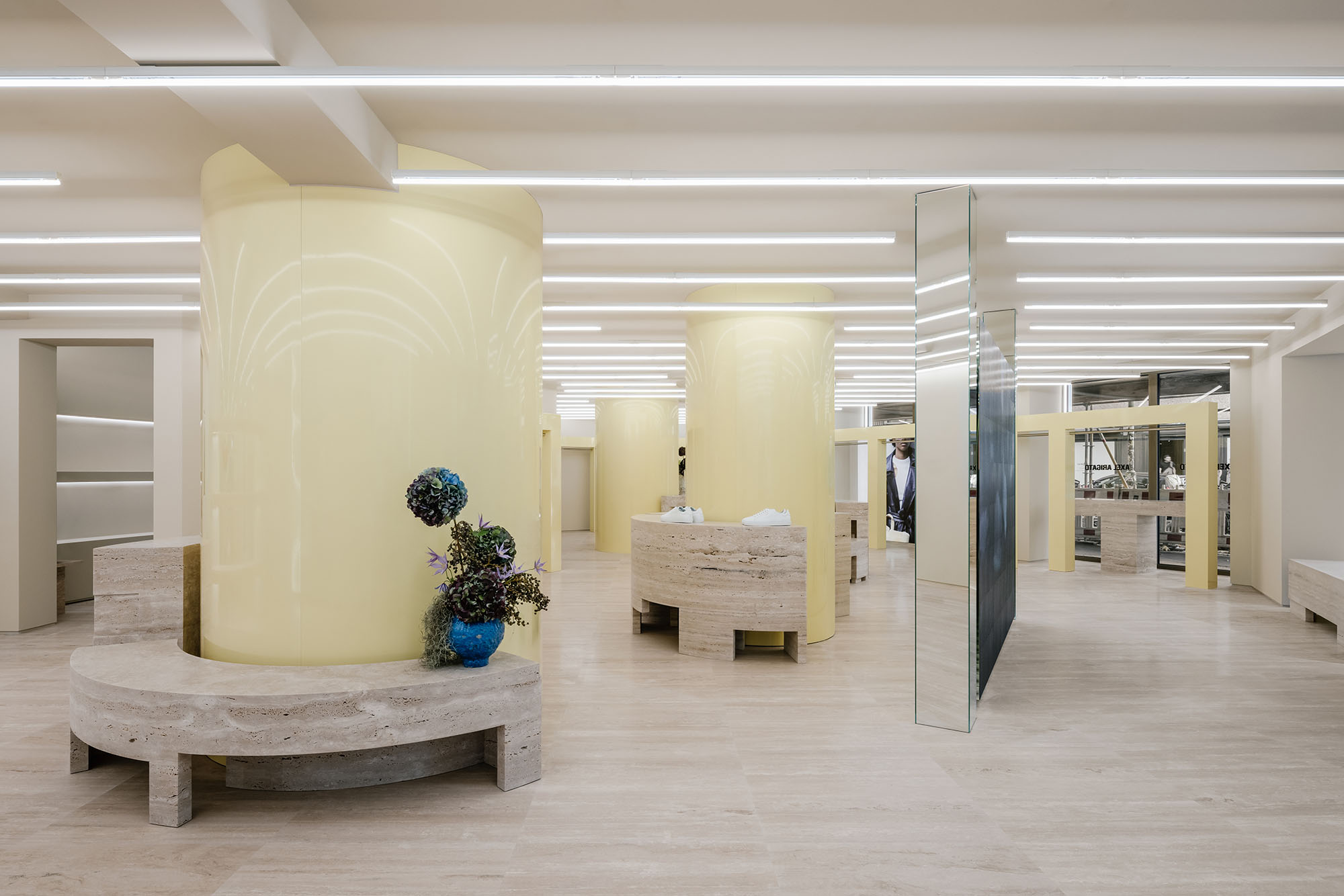 Das Label wurde 2014 von Max Svardh und Albin Johansson gegründet, vereint diesen unnachahmlichen, dänischen Look mit der Ästhetik Japans, besticht dabei durch hochwertige Verarbeitung und könnte kaum besser in eine Zeit passen, in der der Stil der 90 Jahre, Balenciaga-Kult und eine nicht enden wollende Sehnsucht nach Sneakern besteht. Den neuen, natürlich ebenfalls minimalistisch gehaltenen Store mit Terrazzo-Elementen und viel Raum für die einzelnen Stücke findet ihr seit der vergangenen Woche auf der Neue Schönhause Straße 1.