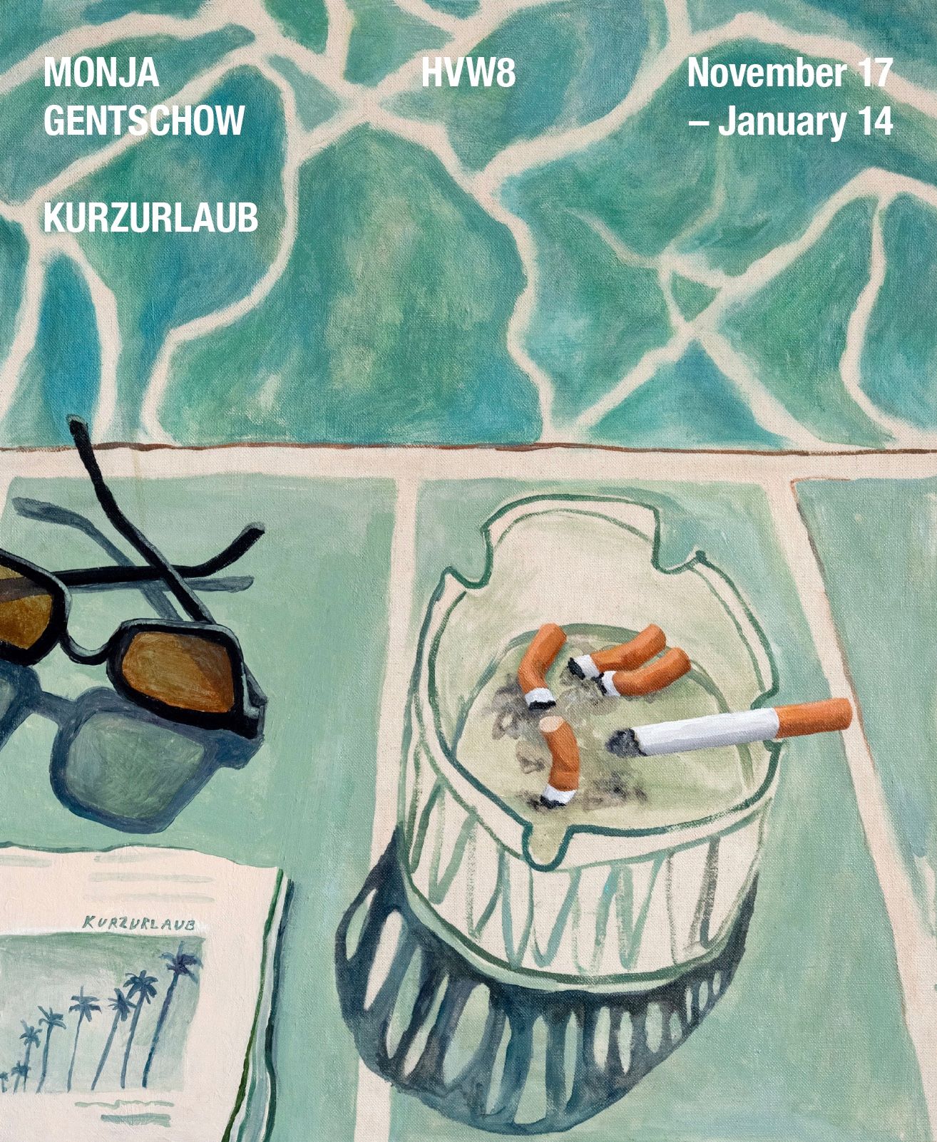 Monja Gentschow ist in Berlin geboren und aufgewachsen, studierte an der Kunsthochschule Berlin-Weißensee und der Universität der Künste und arbeitet als Künstlerin und Illustratorin. Sie ist Artdirektorin des Musiklabels Keinemusik, illustrierte eine Kolumne für Die Zeit und entwarf neben vielen anderen Projekten ein eigenes Kartenspiel. Nun können wir ihre Arbeiten zu „Kurzurlaub“ in der HVW8 Gallery Berlin sehen und uns in Urlaubserinnerungen verlieren und gleichzeitig in ihre Urlaubserinnerungen eintauchen: In solche, die geprägt von Pauschalreisen und Urlaubskatalogen war, Von Hotels mit Pool und Meer und Sonnenschirmen, von bunten Getränken, von 90er Jahre Stühlen. Monja lädt uns in eine Zeit der vollkommenen Entspannung ein und wir tauchen zu gern mit ein!