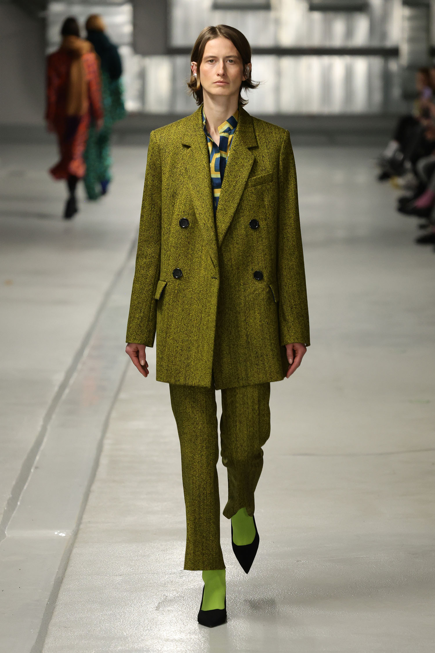 Der Mode darf, trotz aller berechtigter Kritik am jährlichen Schneesport, dennoch die volle Ladung Aufmerksamkeit eingeräumt werden, denn die kommt bei Odeeh auch in diesem Jahr wieder besonders anmutend daher, erinnert an Laufstegmode der 80er und 90er, an Claudia Schiffer Föhnfrisuren, an ganz viel Leichtigkeit und wird mit einem dicken Augenzwinkern versehen. Was wir uns merken wollen? Kastenförmige Mäntel und Blazer bleiben einfach grandios schön. Die wie immer gelungene, Odeeh-Farbkomposition merken wir uns natürlich und auch die Muster- und Print-Parade, die fantastisch zu dieser kleinen, nostalgischen Reise passen, soll auch uns in den kommenden Winter-Saisons weiter begleiten. Kombinationen aus Norweger-Strick und Paillettenröcken und -Hosen funktionieren einfach immer und auch die Ski-Fahrer*innen-Prints dieser Kollektion sind alles andere als infantil, sondern genau unser Geschmack und darf als wunderbares Augenzwinkern auf die Zeit dieser Wintersport-Ära verstanden werden.