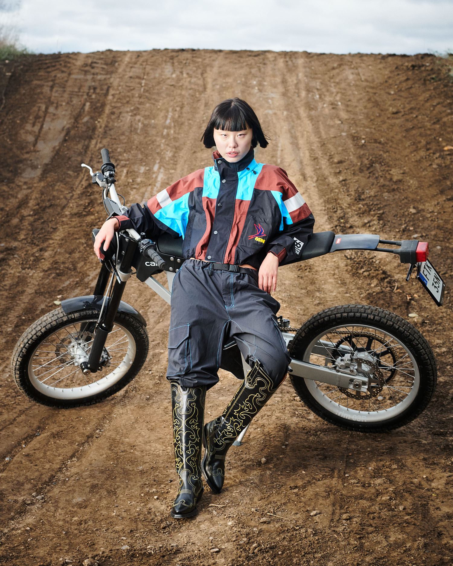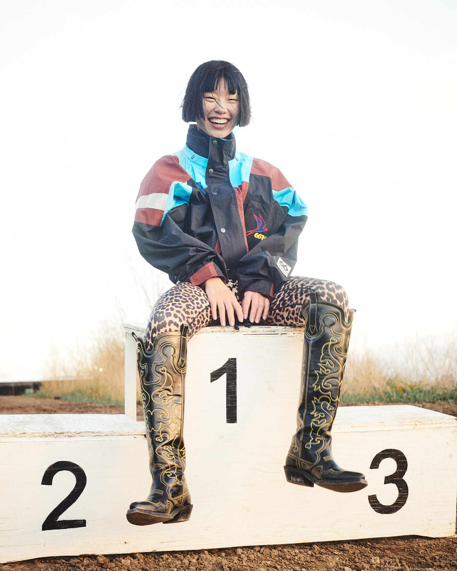 GANNI hat sich erneut mit dem isländischen Outerwear Label 66°North zusammengetan und ausgefallene Anoraks und Cropped Jacken im Biker-Look designt. Aber keinesfalls aus Leder, sondern Outdoor-geeignetes, recyceltes Tech-Material. Und das hat einen Grund: GANNI möchte Leder komplett aus dem Sortiment nehmen – und in der Ready-To-Wear-Linie ist das auch schon passiert!
