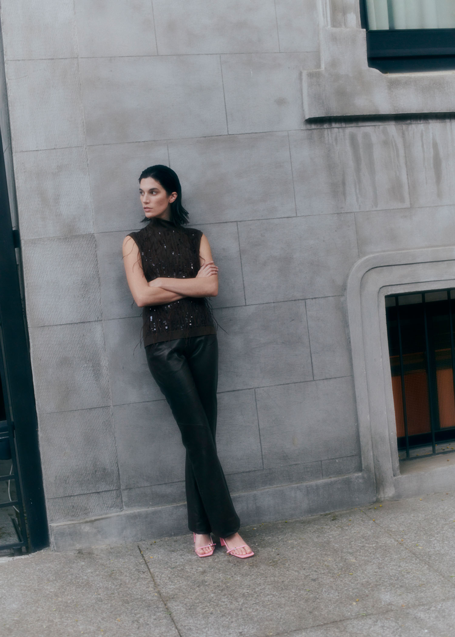 Die ‚9 to 5‘ Kampagne wurde erstmals ausschließlich mit Vintage-Stücken gestylt, die zusammen mit ausgewählten Schuhmodellen aus der neuen Kollektion beim Pop-up in Berlin erhältlich sein werden. Dieses neue nachhaltige Konzept soll zukünftig für alle Kampagnen etabliert werden und möglichst allen Aeyde-Freund*innen zugänglich gemacht werden. Weitere Städte und ein Online Pop-up Sale sind also nicht ausgeschlossen.