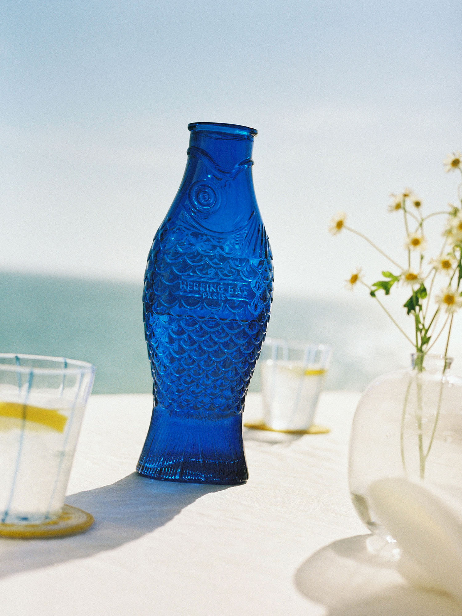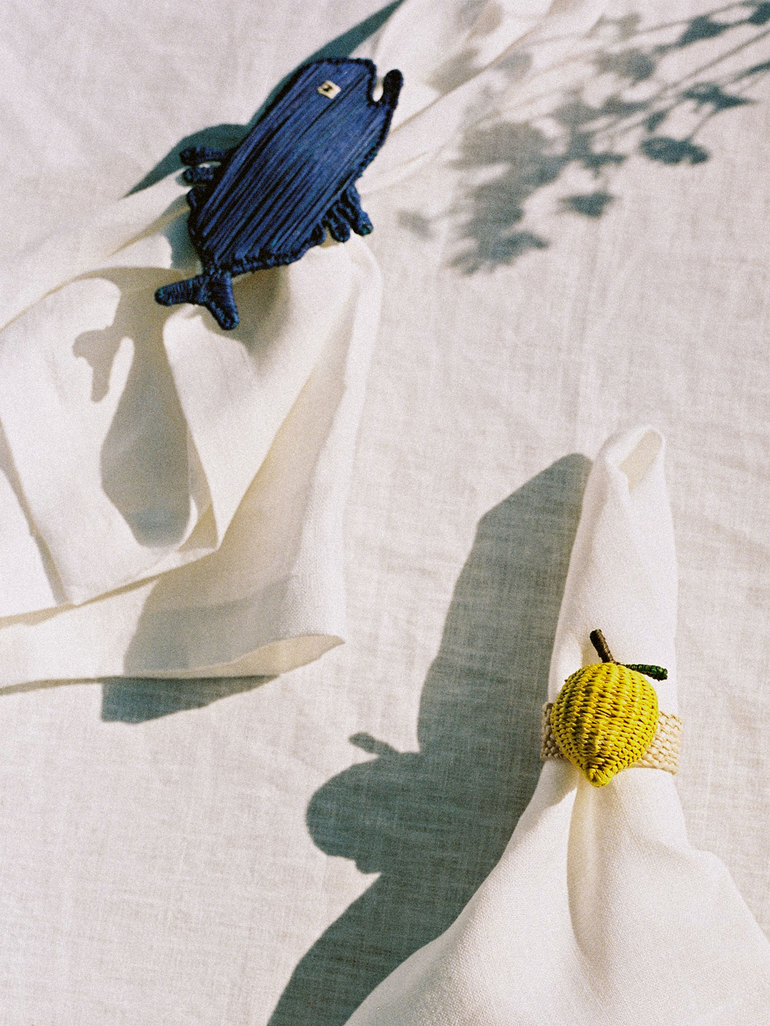 Wenn dunkles Blau auf Jute trifft, dann steckt da eigentlich immer ein Volltreffer hinter. Wenn es dann auch noch um den gedeckten Tisch geht, Fisch-Symbole und Zitronen dazu kommen, ist das Gesamtkonzept perfekt. Schmeckt wie Urlaub, ein Tag am Meer und duftet nach Salz in der Luft.