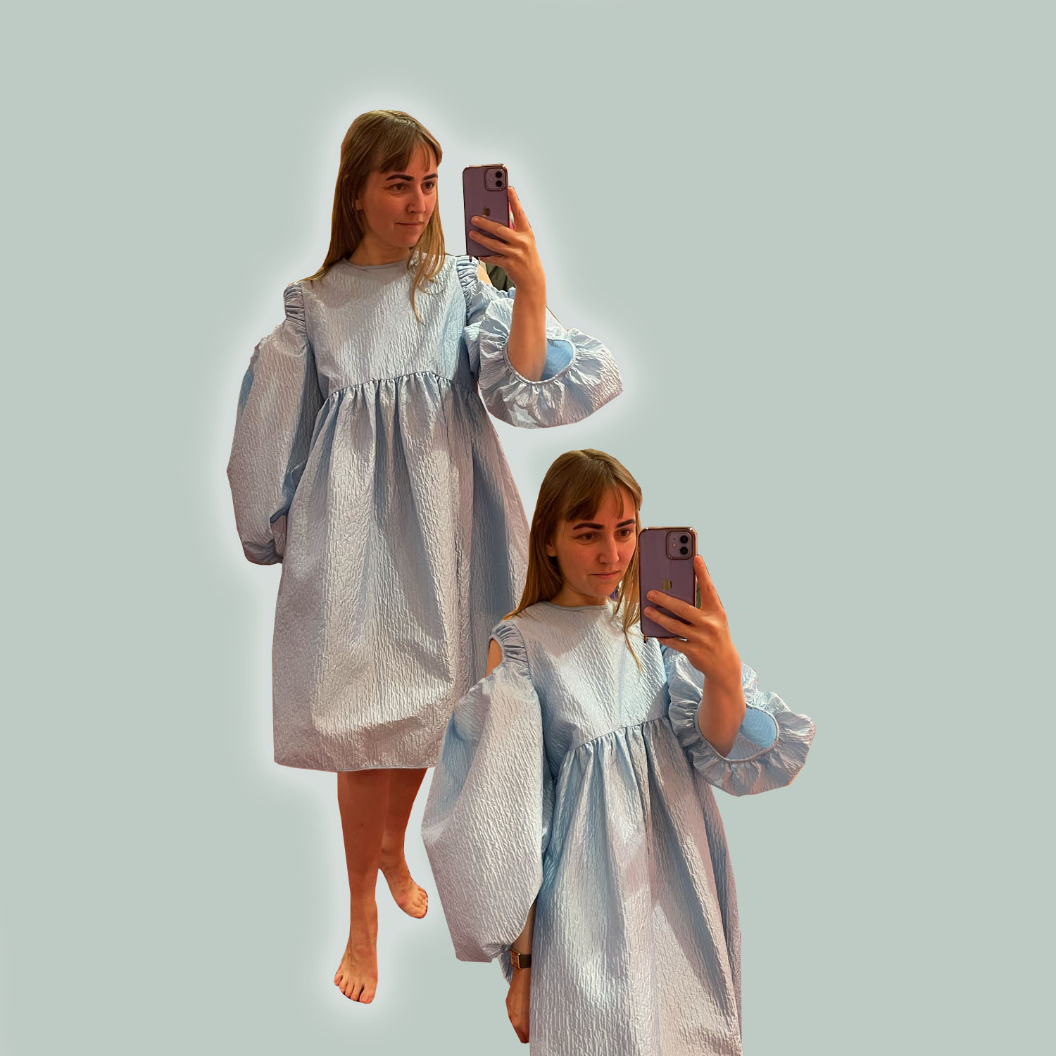 Ich bestellte also ein grandios schönes Paillettenkleid von Maje. Bodenlang, irgendwie zart – aber auch einfach schon wieder ROSA. ROSA, wie immer. Ich glaube, auf den vergangenen sieben Hochzeiten, auf denen ich tanzte, trug ich Rosa. Nur, dass der Ton auf meiner blassen Haut diesmal auch noch eher nach Leberwurst aussah, als nach strahlendem Rosa. Meine beratenden Freundinnen waren dennoch aus dem Häuschen, nur bei mir löste das Kleid keine Jubelschreie aus. Aber besser als kein Kleid, dachte ich, sah die wunderschöne Maje Robe als Back-Up an und blinzelte trotzdem noch einmal im KaDeWe vorbei. Genauer gesagt in ihrer Outlet Sektion, in der man durchaus ein paar Minuten länger braucht, um vollends anzukommen, und um sich einen Durchblick zu verschaffen. Gesagt getan und einen Traum von Cecilie Bahnsen gefunden, der dort einfach für rund ein Viertel des Preises hing und eingetütet werden konnte. Was für ein Glück – und dann auch noch in hellblau, statt in rosa! Ich war im Himmelchen.