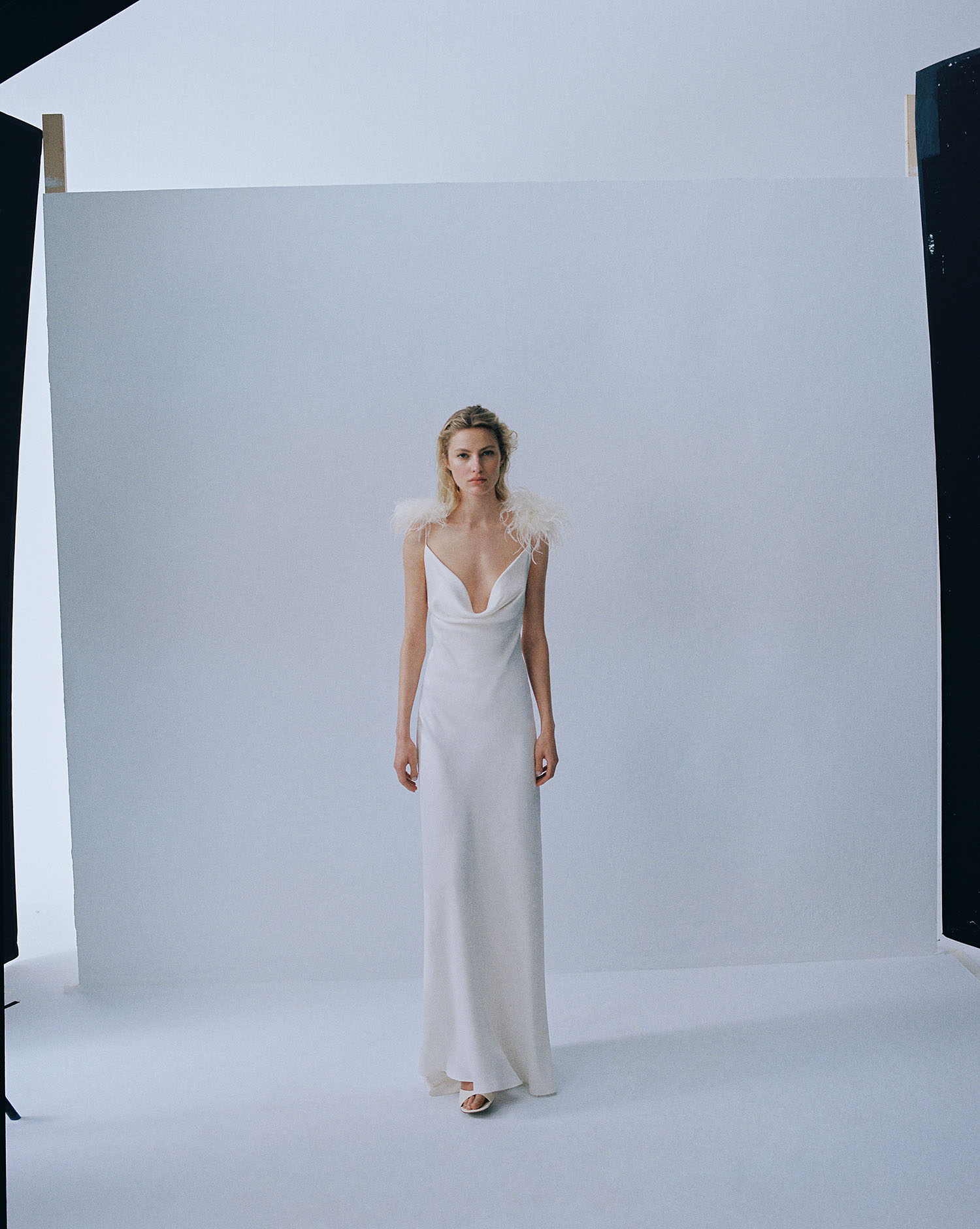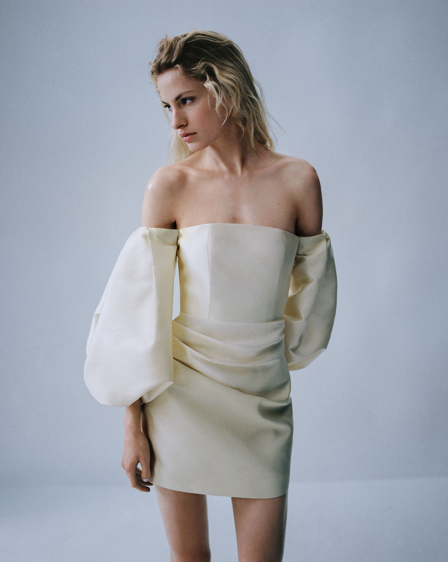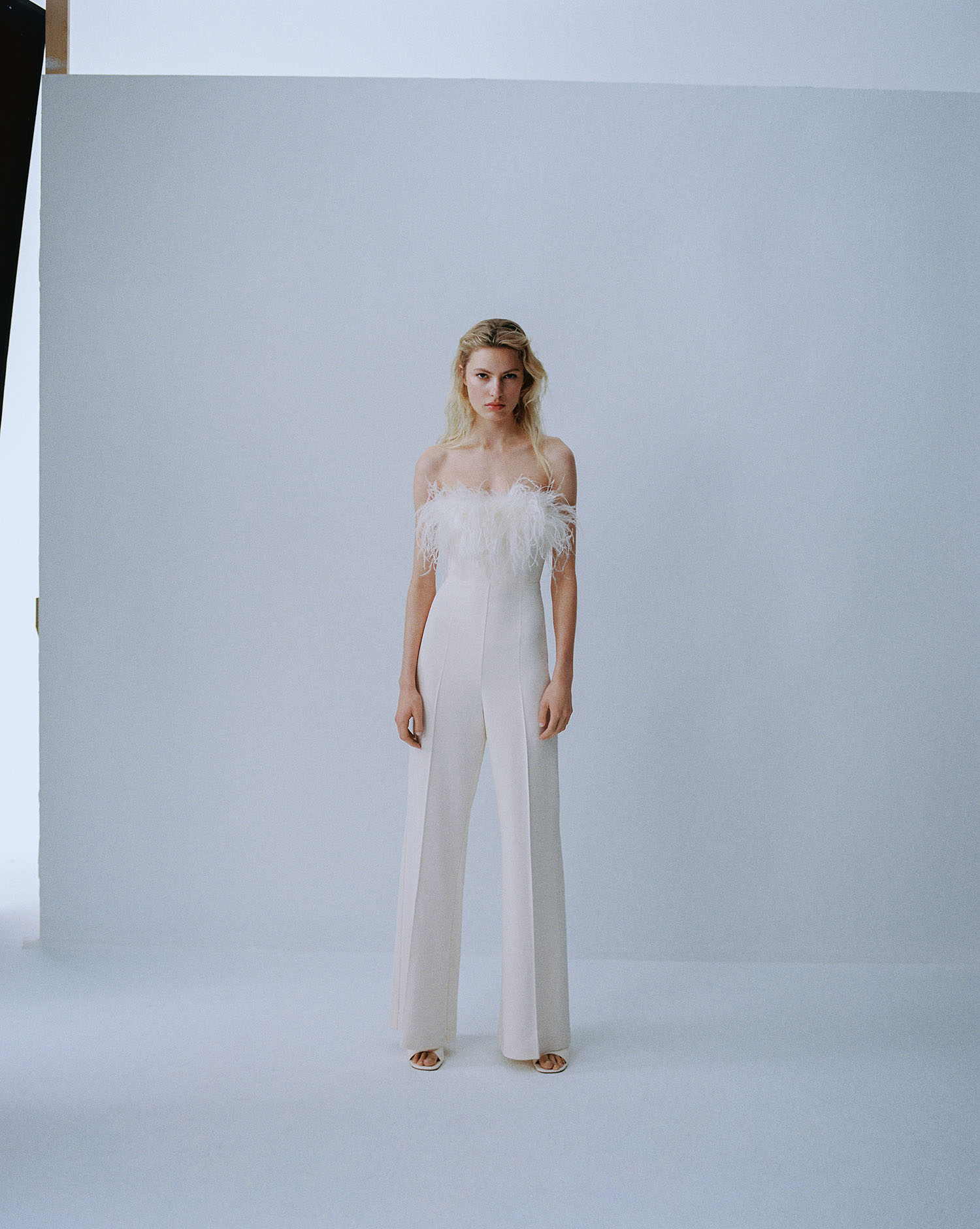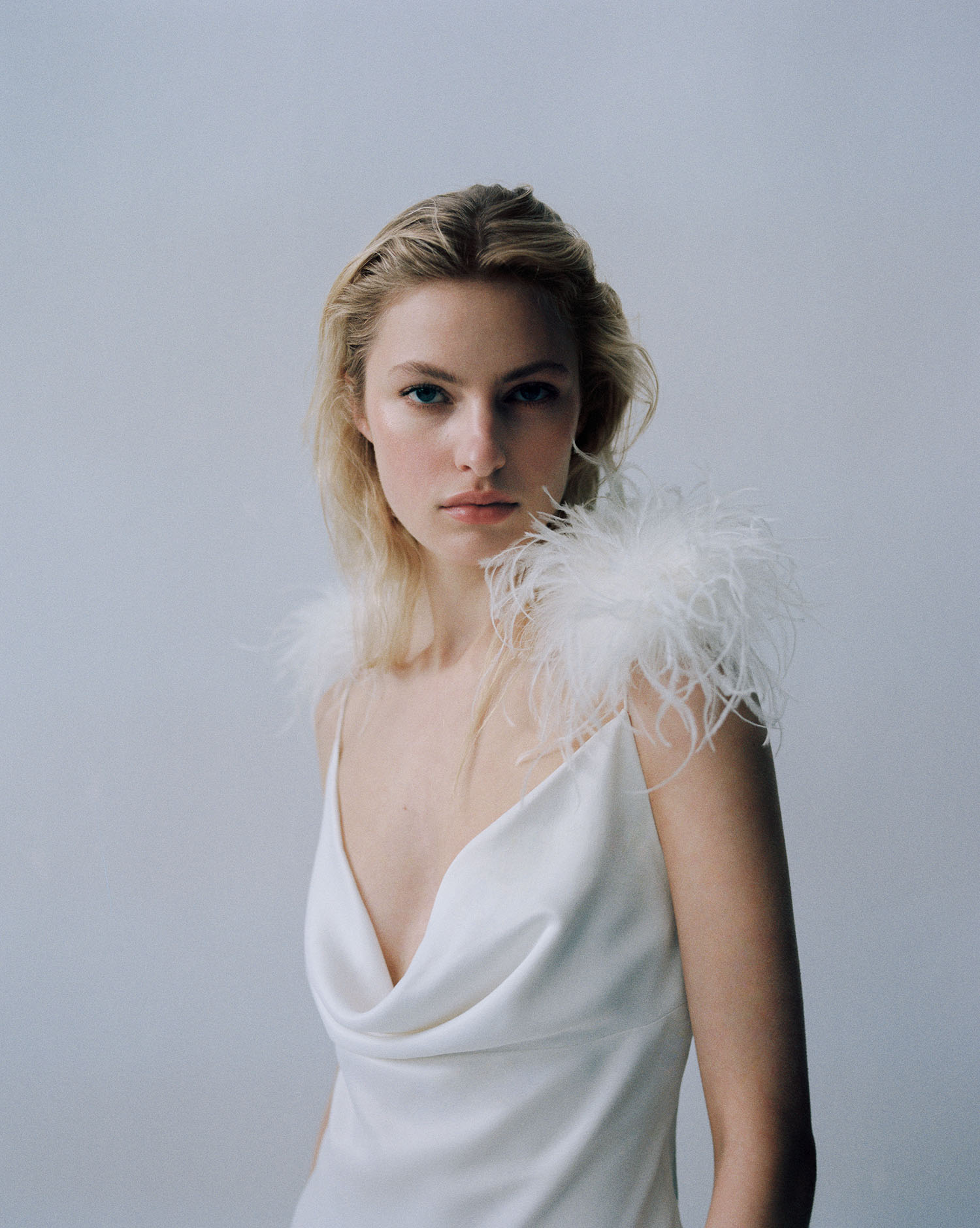 Der Midprice-Hochzeitsmarkt läuft längst wie geschnitten Brot und bringt immer wieder erstaunlich schöne Kreationen hervor. Pünktlich zur Hochzeitssaison meldet sich nun auch Mango mit seiner Idee von „weißer Heirat“ und eleganten Abendkreationen: Wir sehen Federn, Zweiteiler, enge Roben, metallische Details, Spitze und verschiedenste Silhouetten, finden Kreationen fürs Standesamt, für die schönste Zweisamkeit oder das rauschende Fest. Aber seht doch selbst: