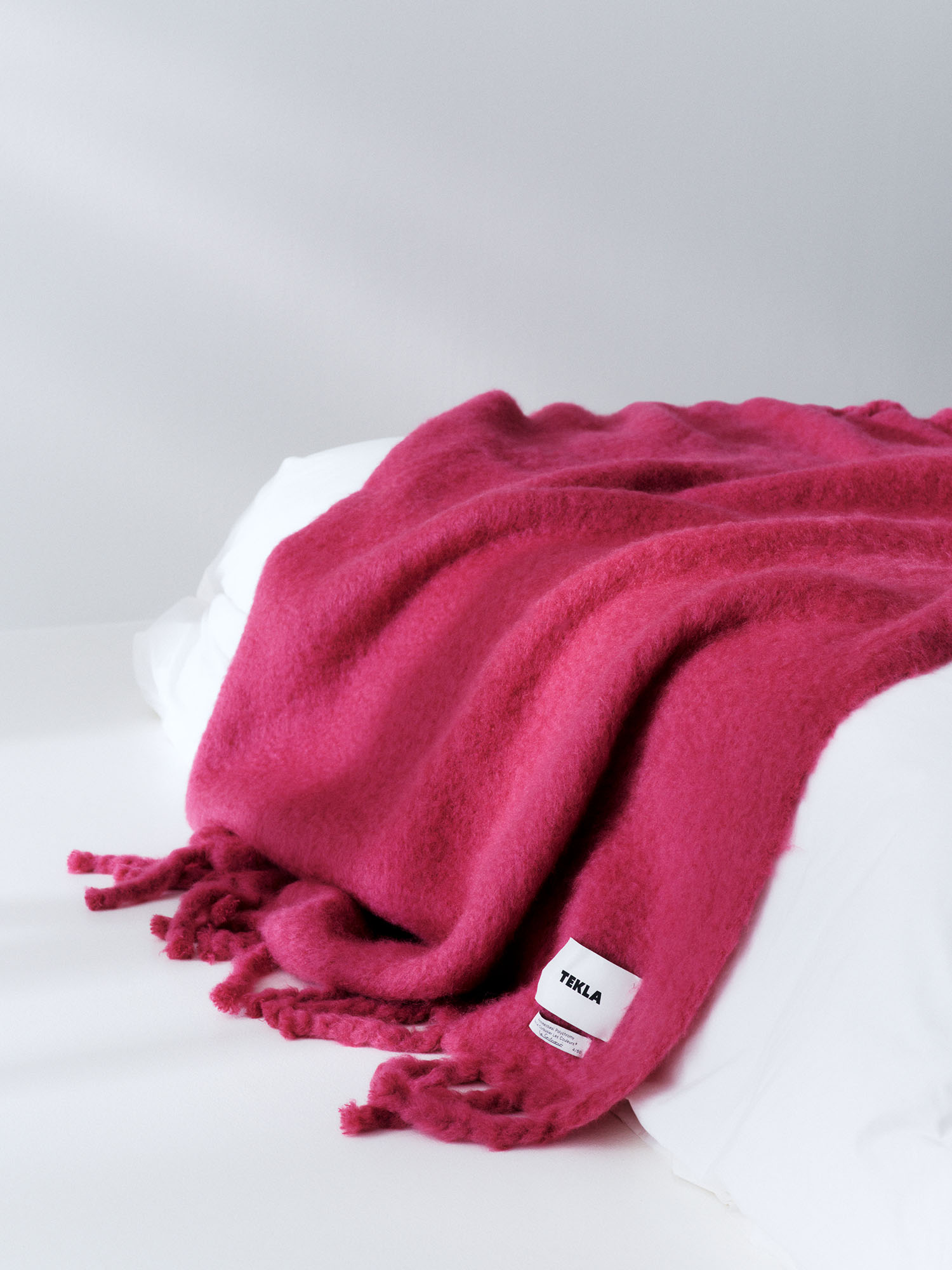 handgefertigten Quasten versehen und als Teil einer limitierten Auflage mit einer Nummer signiert. Alle Mohair Decken sind 130 x 200 cm groß.