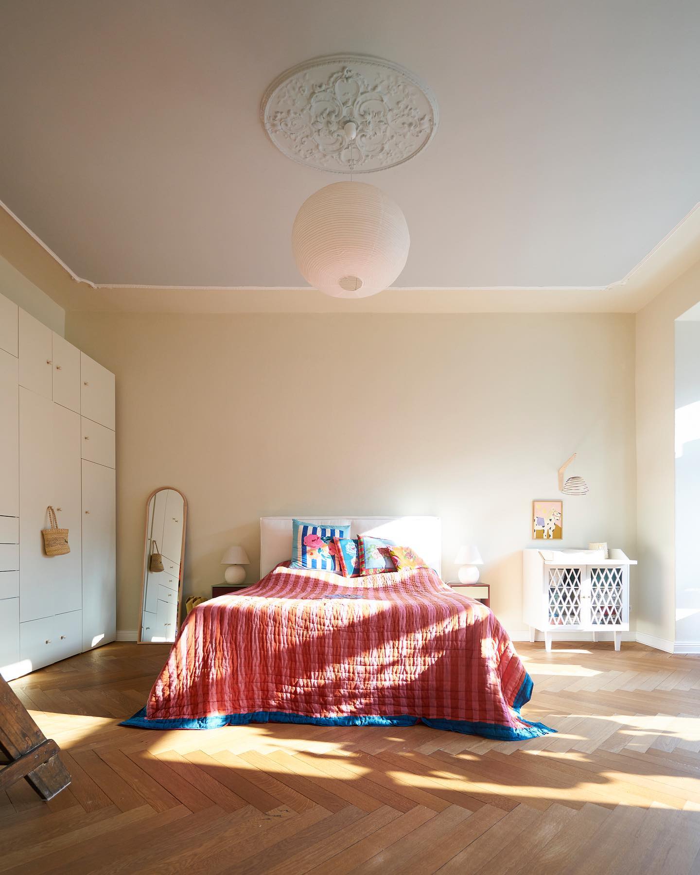 Ich weiß ziemlich genau, dass Oma Mia sich beim Betrachten dieser Bilder kaputt lachen wird. Aufgewachsen auf dem kleinen Bauernhof meiner Großeltern, zwischen bunten Tischdecken und Blumenkissen, schwor ich mir, es einmal ausgezogen unbedingt anders zu machen: Minimalistisch eben, mit Matratze auf dem Boden, viel Weiß und extra wenig Klimbim. Hat auch eine Weile lang richtig gut geklappt. Aber irgendwann hat sie mir dann doch gefehlt: Die Gemütlichkeit, die ich von Zuhause kannte. Der Sessel zum Lesen. Das hohe Bett. Aber vor allem die Farben. Weshalb ich @julia_wuelfing um Rat fragte (welche Töne passen erstens zusammen und zweitens zu uns?) und dank @impulse_bc und @vanja_janjic Unterstützung von @farrowandball bekam. Und so kam es, dass sogar der Ikea Schrank einen neuen Lack bekam – in der Farbe der Wände: Clunch 2009. Die Decke strahlt in Skylight 205 und den Erker haben wir in Fruit Fool 9911 getaucht. Fertig. Danke 🦆🦆🦆🦆 (Anzeige)