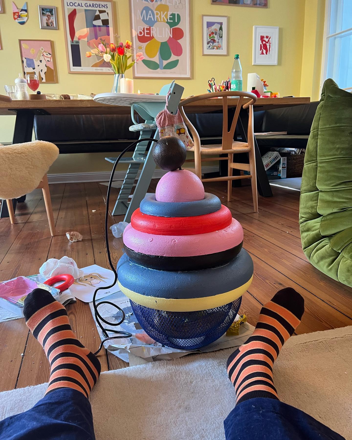 Liebe Schwarm-Intelligenz, ich bin an meiner Überheblichkeit gescheitert. Da dachte ich doch wirklich, man könne „einfach so“ eine Lampe bauen. Pustekuchen. Sie hält und hängt zwar, aber oben ist es jetzt stockdunkel und unten scheint ein blendendes Licht heraus. War das also eine spontane Idee von meinem großen Kind und mir für die Tonne oder ist unsere Torten- (oder Hut?)Lampe noch zu retten?